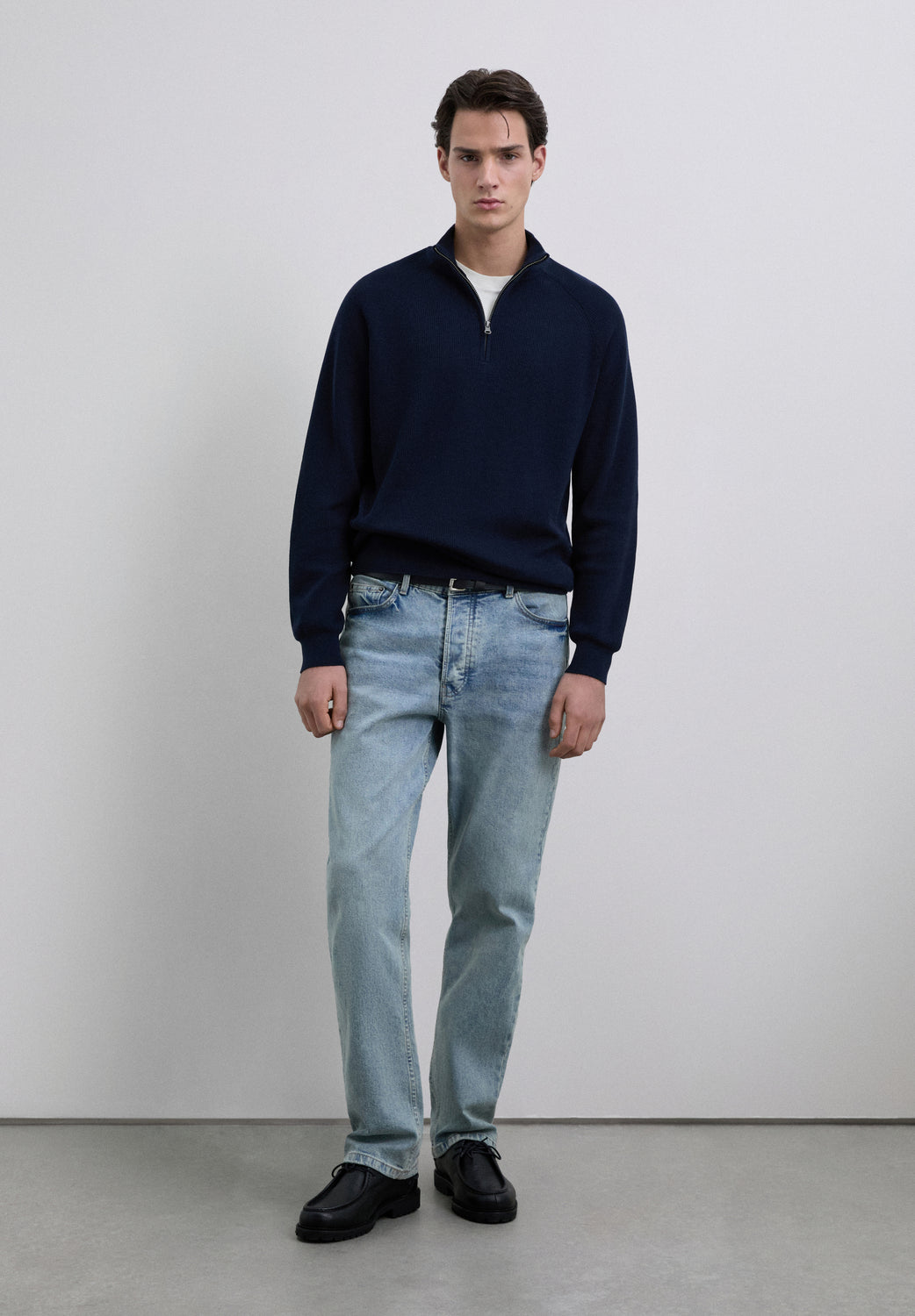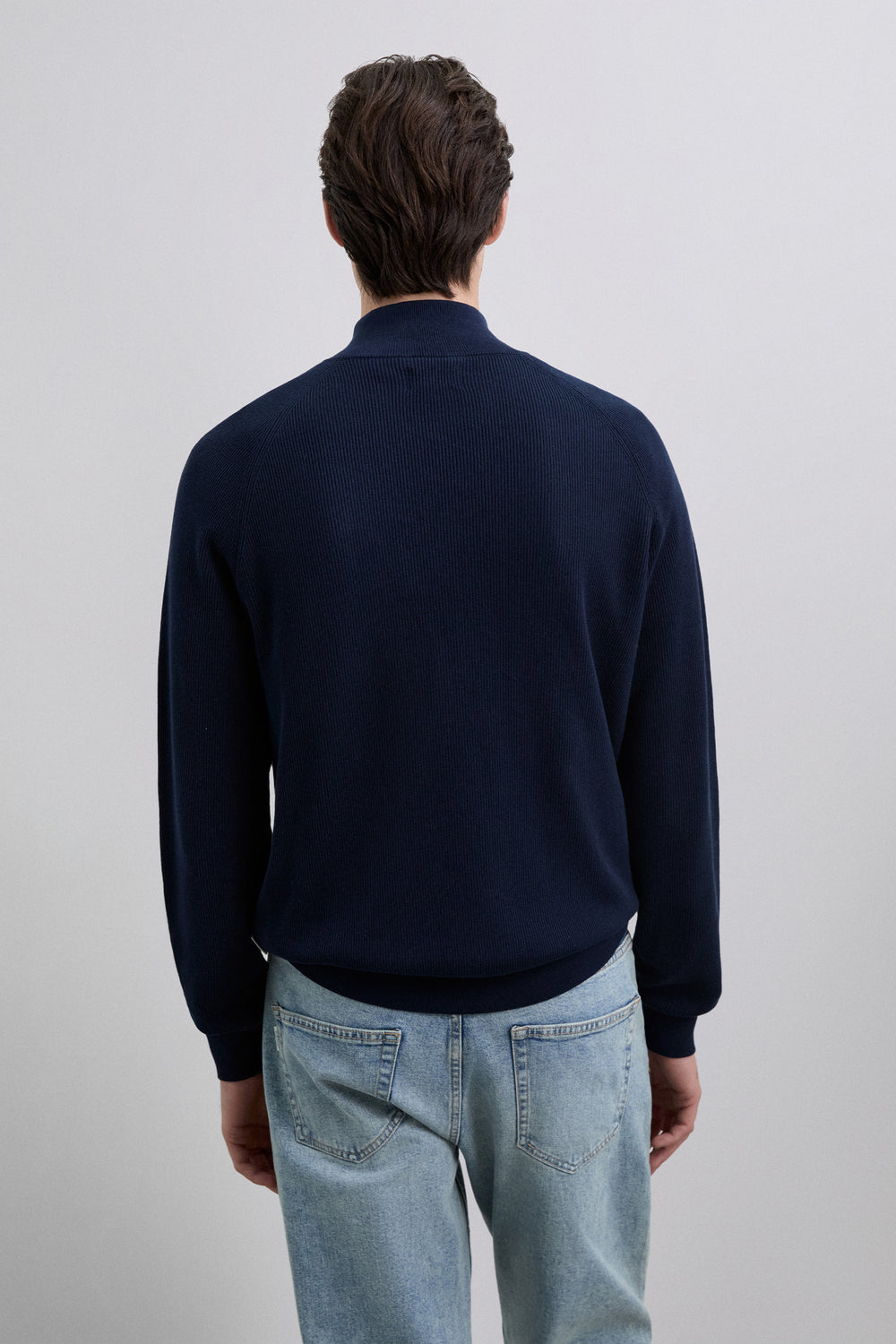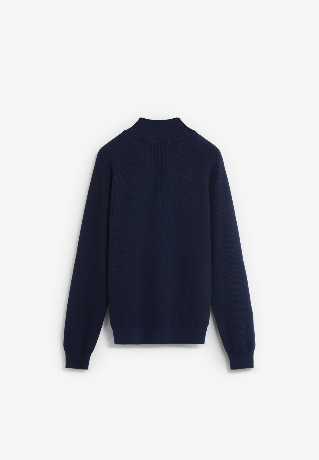 Jersey confeccionado en 100% algodón BCI. Manga larga. Cuello mock con cremallera.