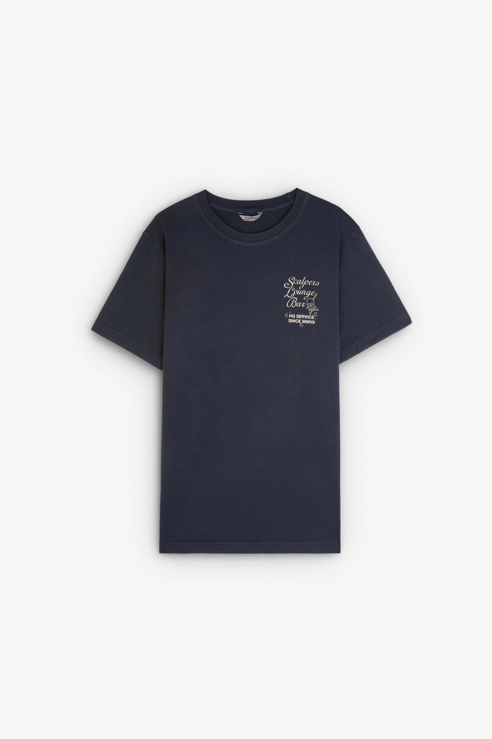 Camiseta con print en pecho y espalda. Confeccionada en 100% algodón BCI. Corte Regular Fit. Cuello redondo. Manga corta.
