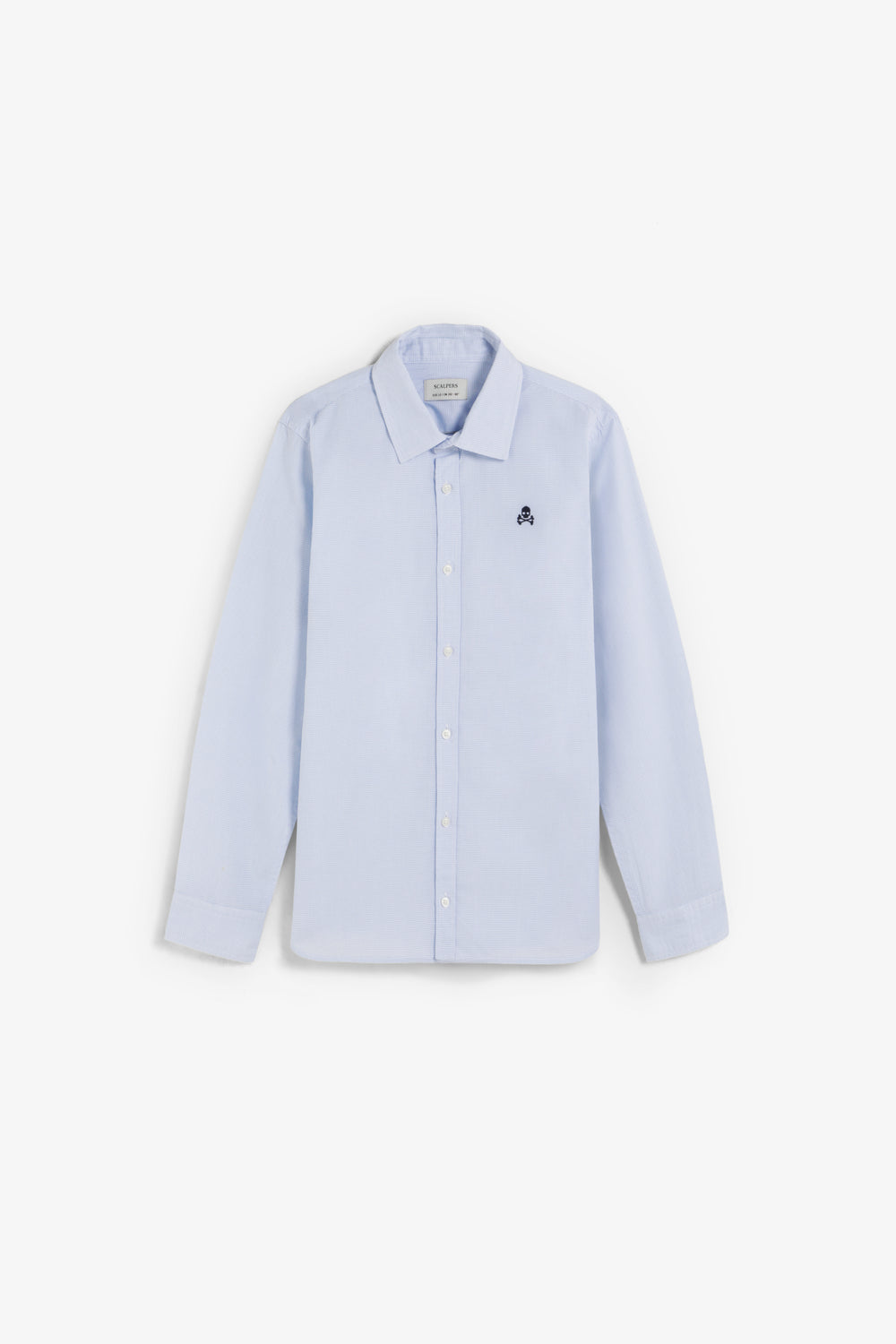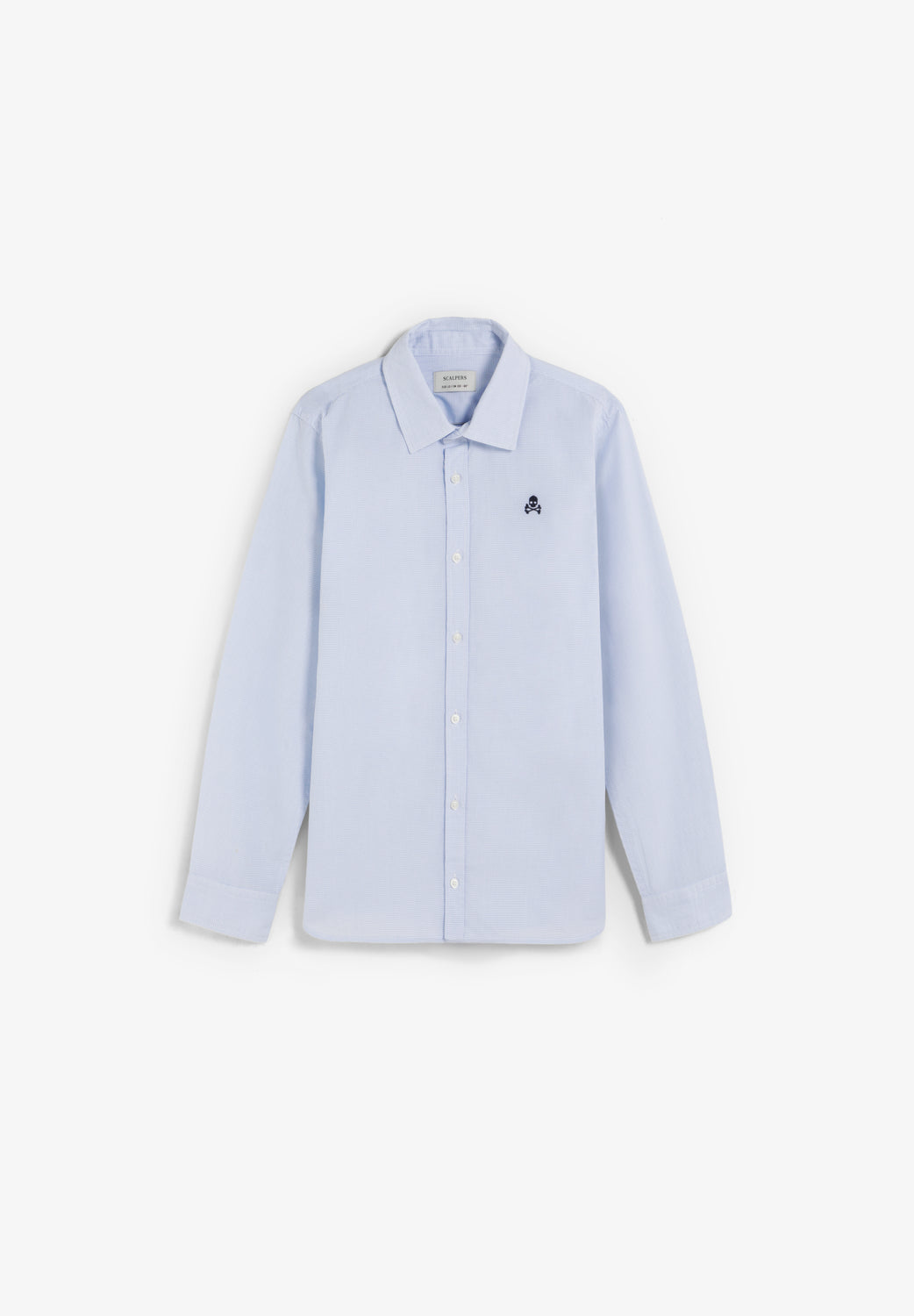Camisa de vestir confeccionada en 100% algodón BCI. Manga larga. Puños ajustables por botón. Cierre mediante botones. Motivo estampado. Calavera bordada a contraste en pecho.