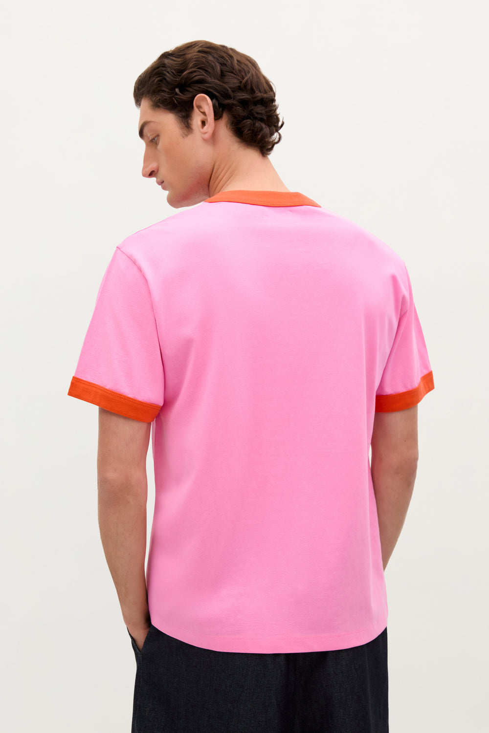 Camiseta confeccionada en 100% algodón con print delantero y detalle de vivo en cuello y mangas a contraste. Corte Regular Fit, cuello redondo y manga corta.