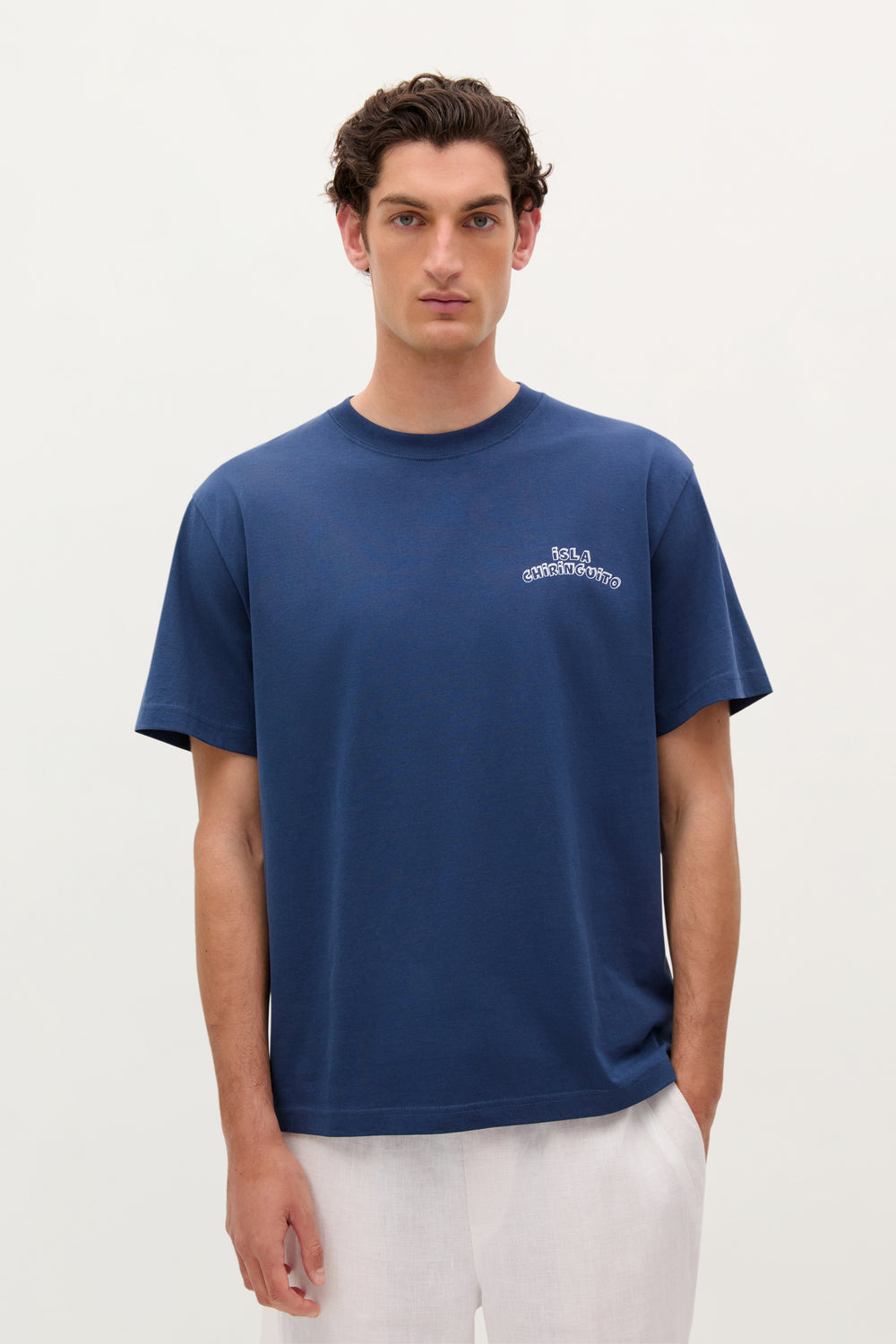 Camiseta confeccionada en 100% algodón con print trasero. Corte Regular Fit, cuello redondo y manga corta.