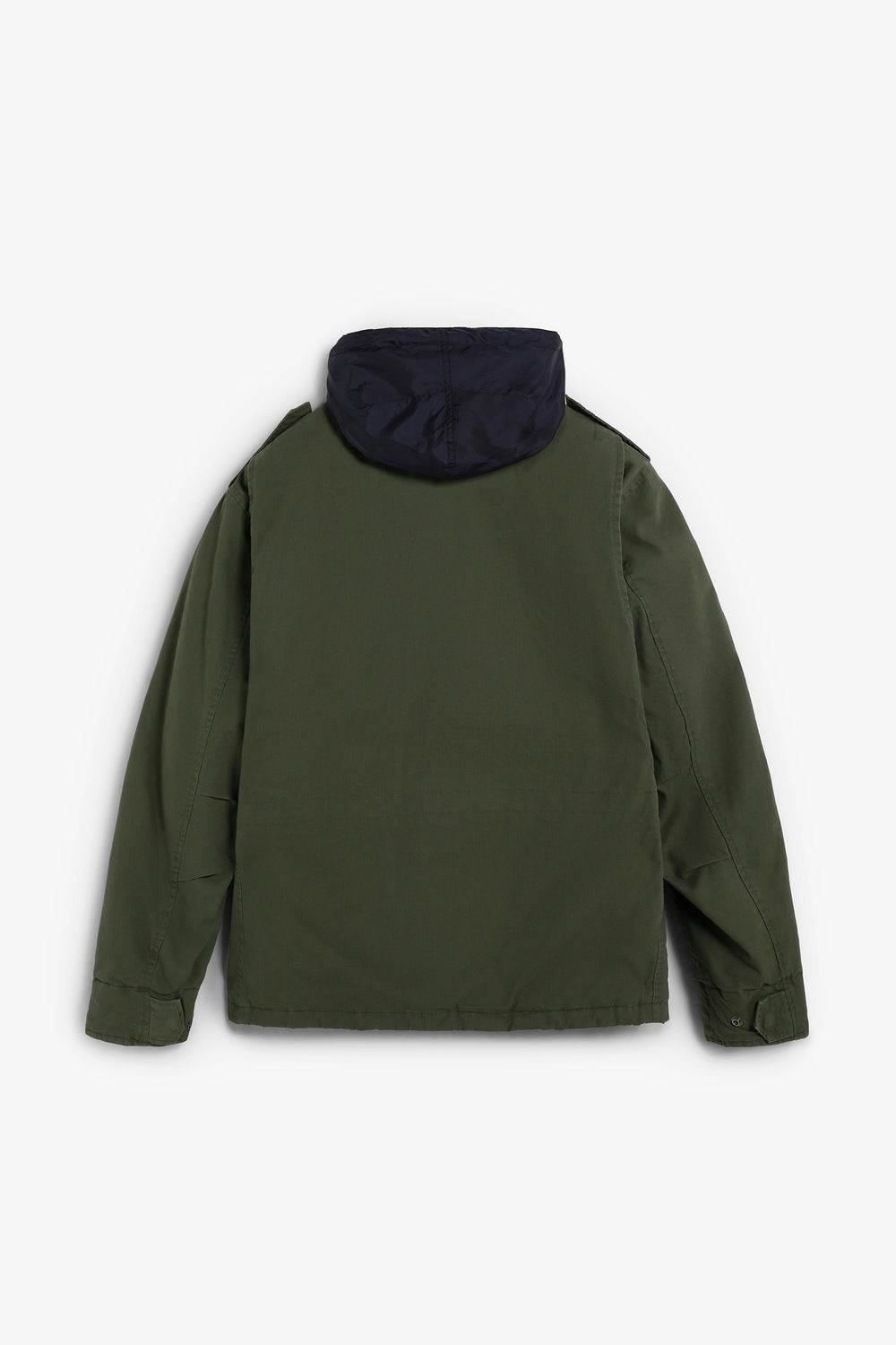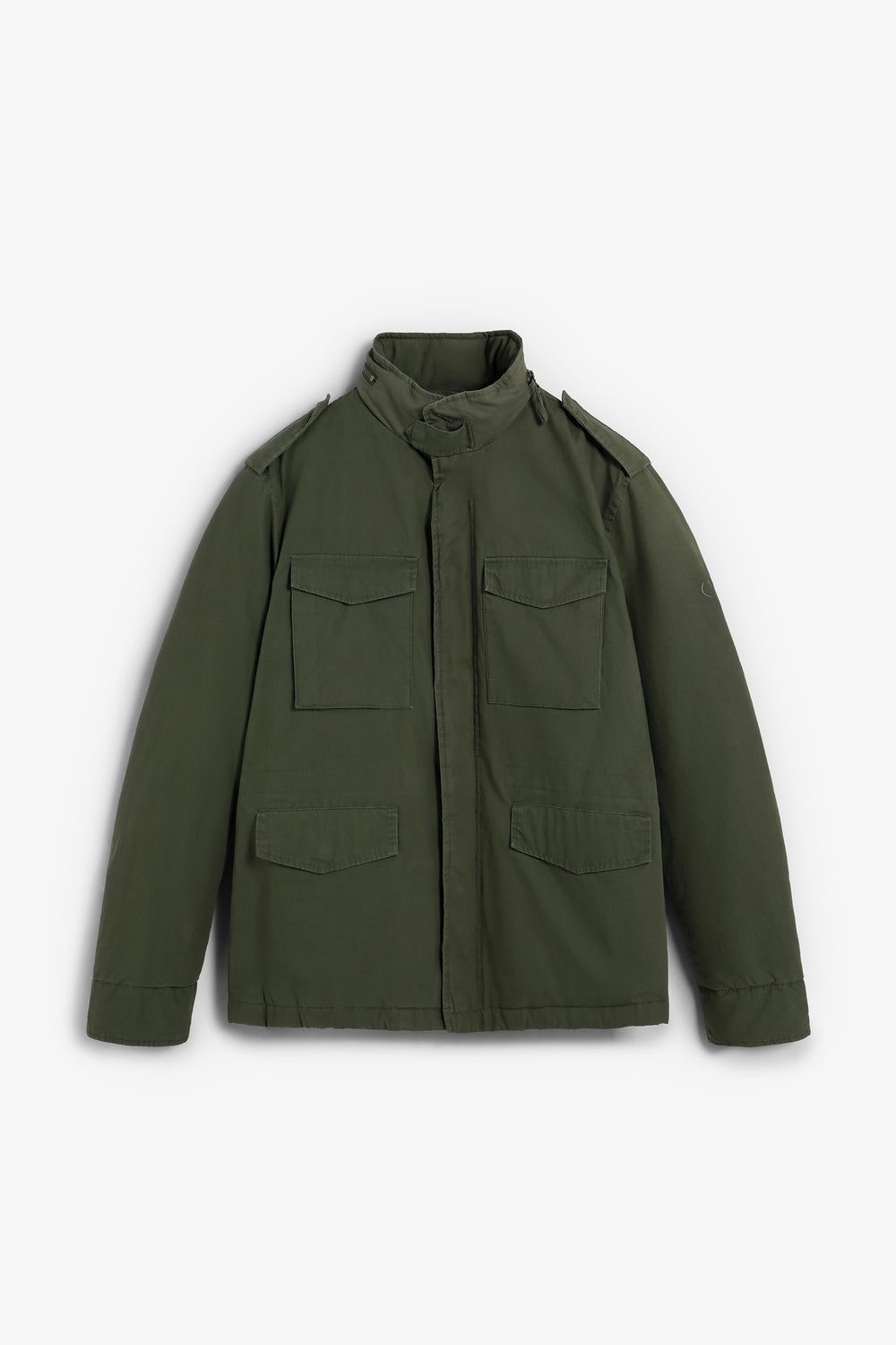 Parka confeccionada en algodón BCI. Estilo militar. Cuatro bolsillos en frontal. Detalle de cierre en el cuello. Cierre delantero con cremallera y capucha de contraste oculta en cuello. Interior forrado con motivo rombos. Puños ajustables. Detalle de logo alta densidad en manga. Capucha desmontable con cremallera.