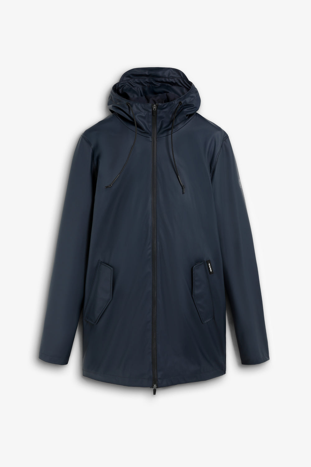 Chaqueta impermeable. Cuello con capucha ajustable con cordón. Cierre con cremallera.. Manga larga. Bolsillos laterales con tapeta y snap. Detalle logo engomado a contraste en frontal inferior y calavera a contraste en manga.