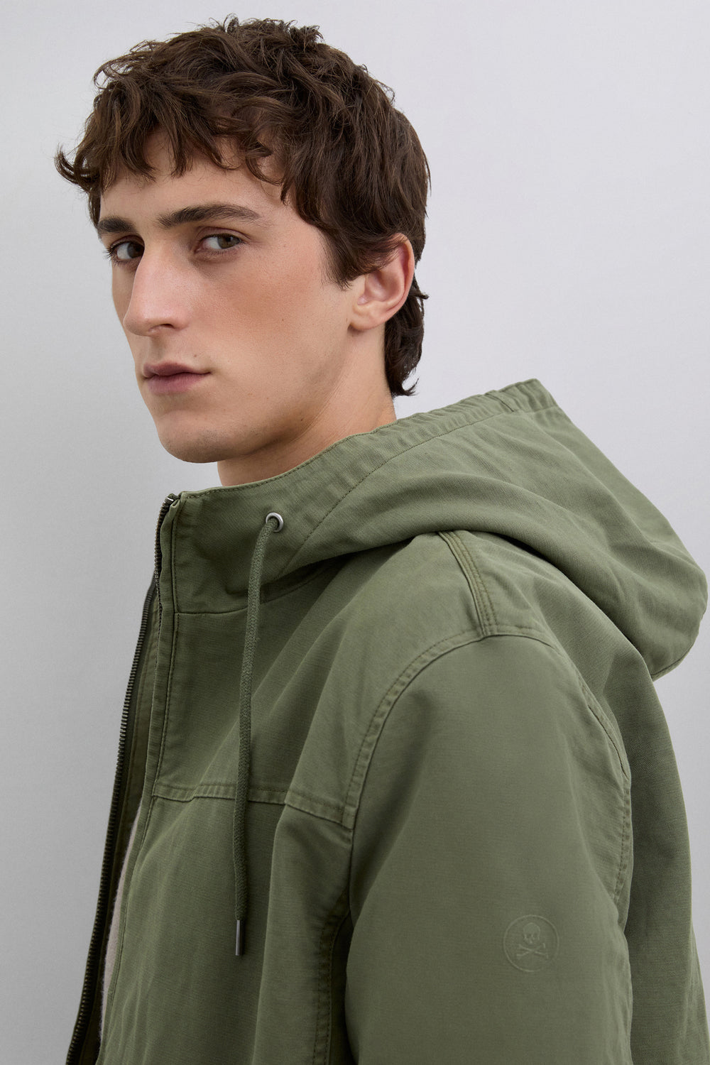 Cazadora confeccionada en 100% algodón BCI. Bolsillos vivos en lateral. Capucha con cordón ajustable. Cremallera y topes de cordón personalizados con logotipo. Detalle de logo estampado de alta densidad. Manga con puño elástico.