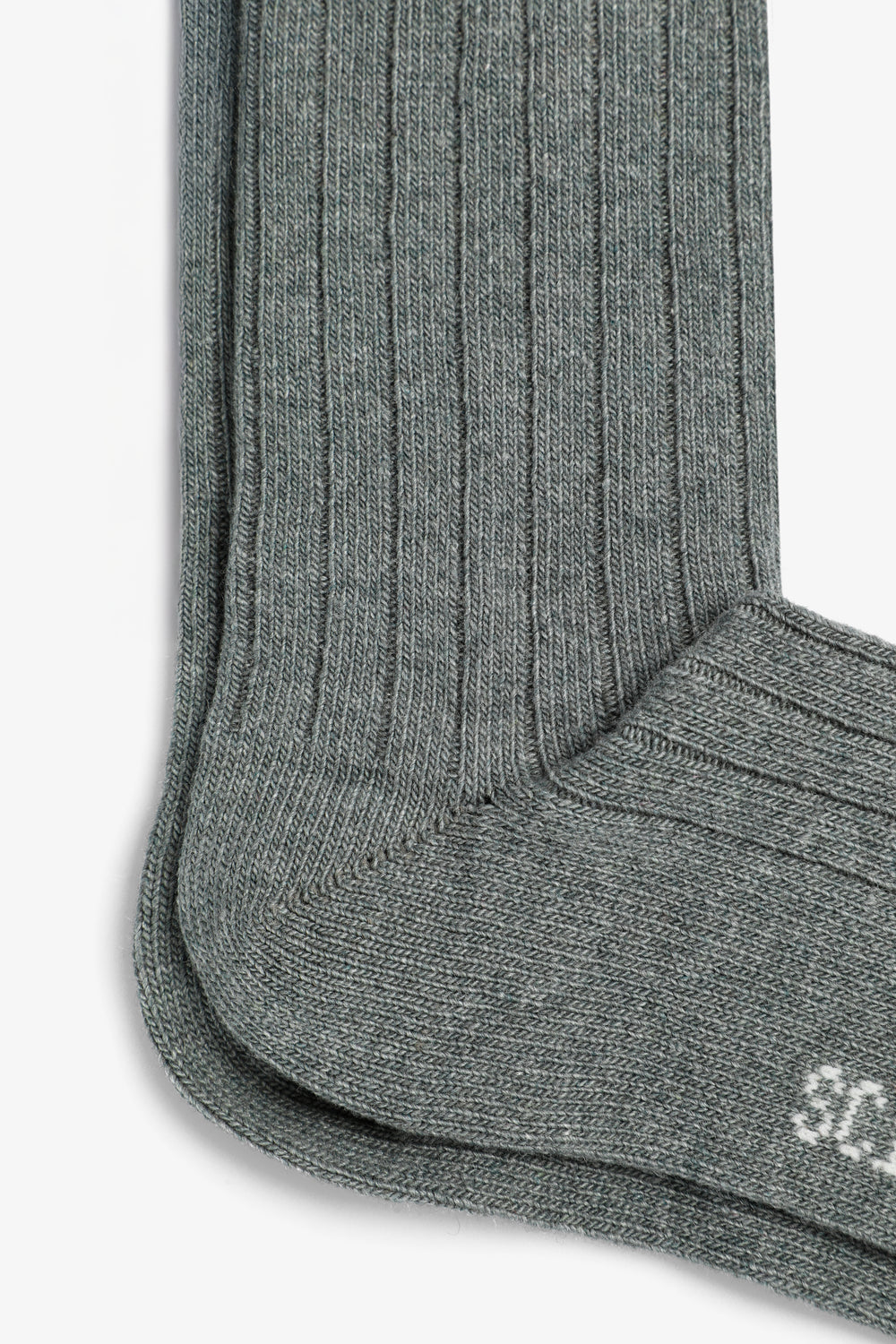 Calcetines de tiro alto confeccionados en mezcla de lana y cashmere. Detalle de logo bordado en planta. Acabados superior acanalados.
