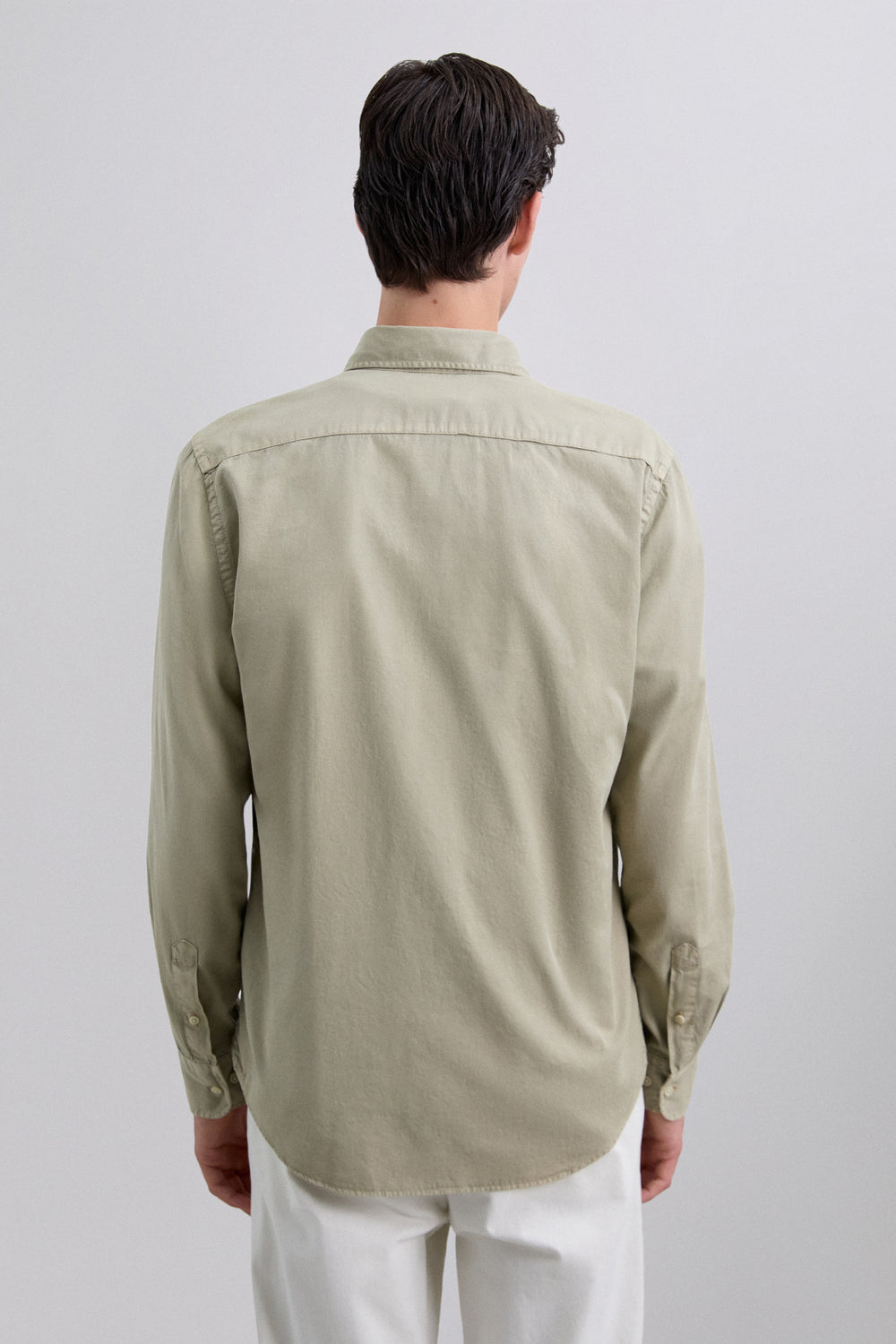 Camisa confeccionada en 100% Algodón Orgánico. Corte Regular. Cuello Italiano. Cierre mediante abotonadura en frontal. Mangas largas con puños abotonados. Bolsillo de parche en el pecho. Embozo en el puño. Detalle de calavera bordada a tono.