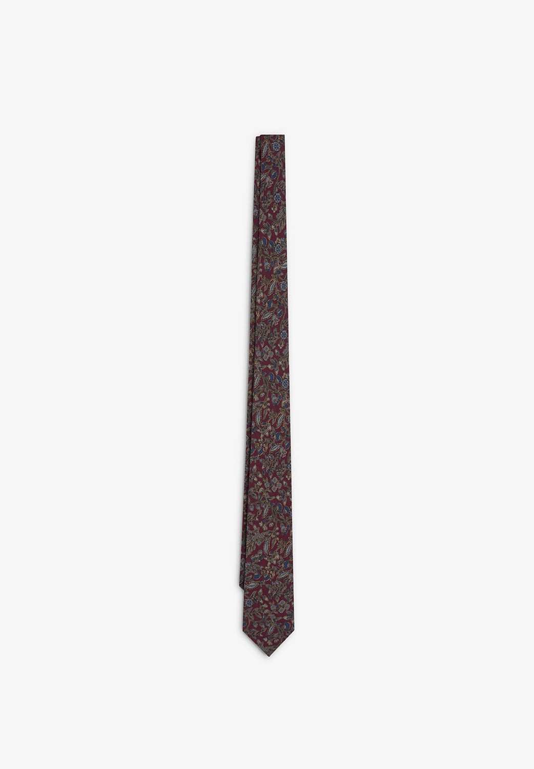 Corbata de lana 100% con estampado floral y forrada, con 7.5 cm de ancho.