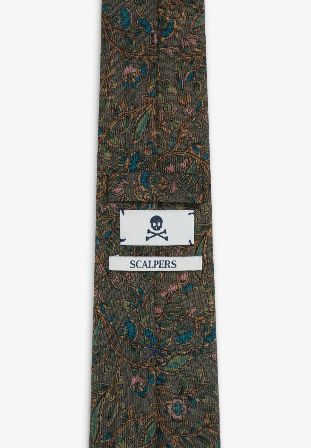 Corbata de lana 100% con estampado floral y forrada, con 7.5 cm de ancho.