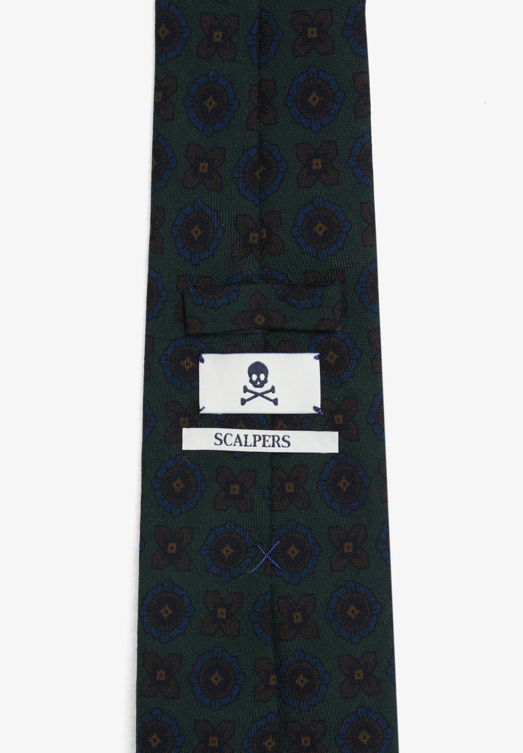 Corbata de lana 100% con estampado floral y forrada, con 9.5 cm de ancho.