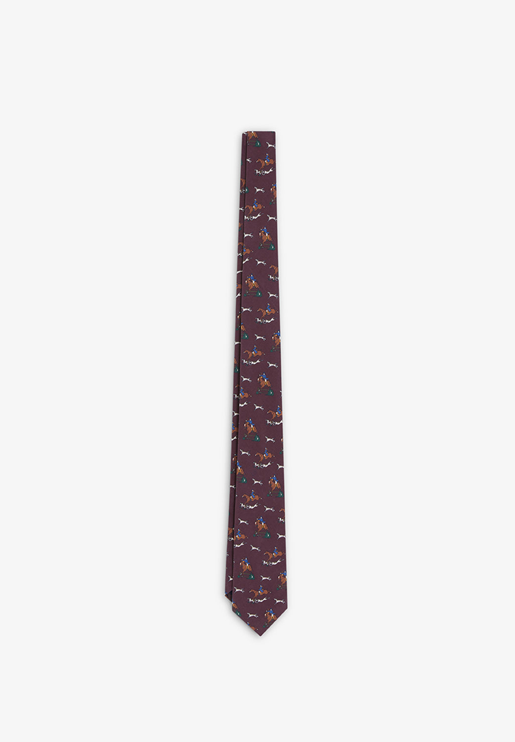 Corbata estampada de seda 100% y forrada, con 7.5 cm de ancho.