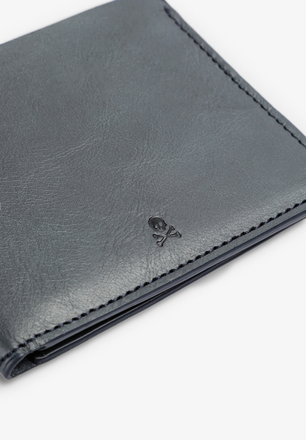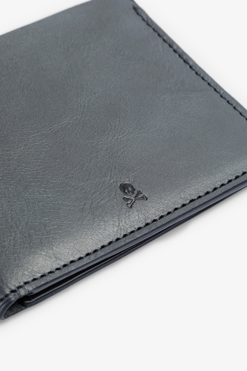 Cartera con calavera y logo grabado. Confeccionada en 100% piel. Ranuras y compartimentos interiores.