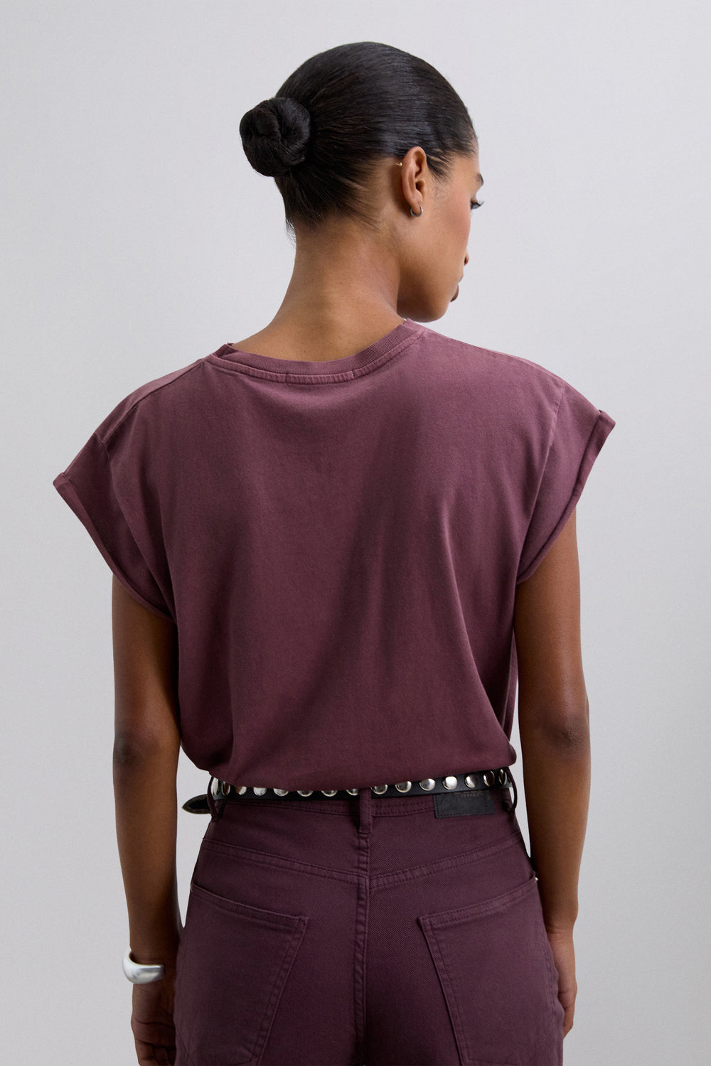 Camiseta confeccionada en 100% algodón orgánico. Corte regular fit, cuello redondo y manga sisa. Detalle de logo bordado a tono en pecho.