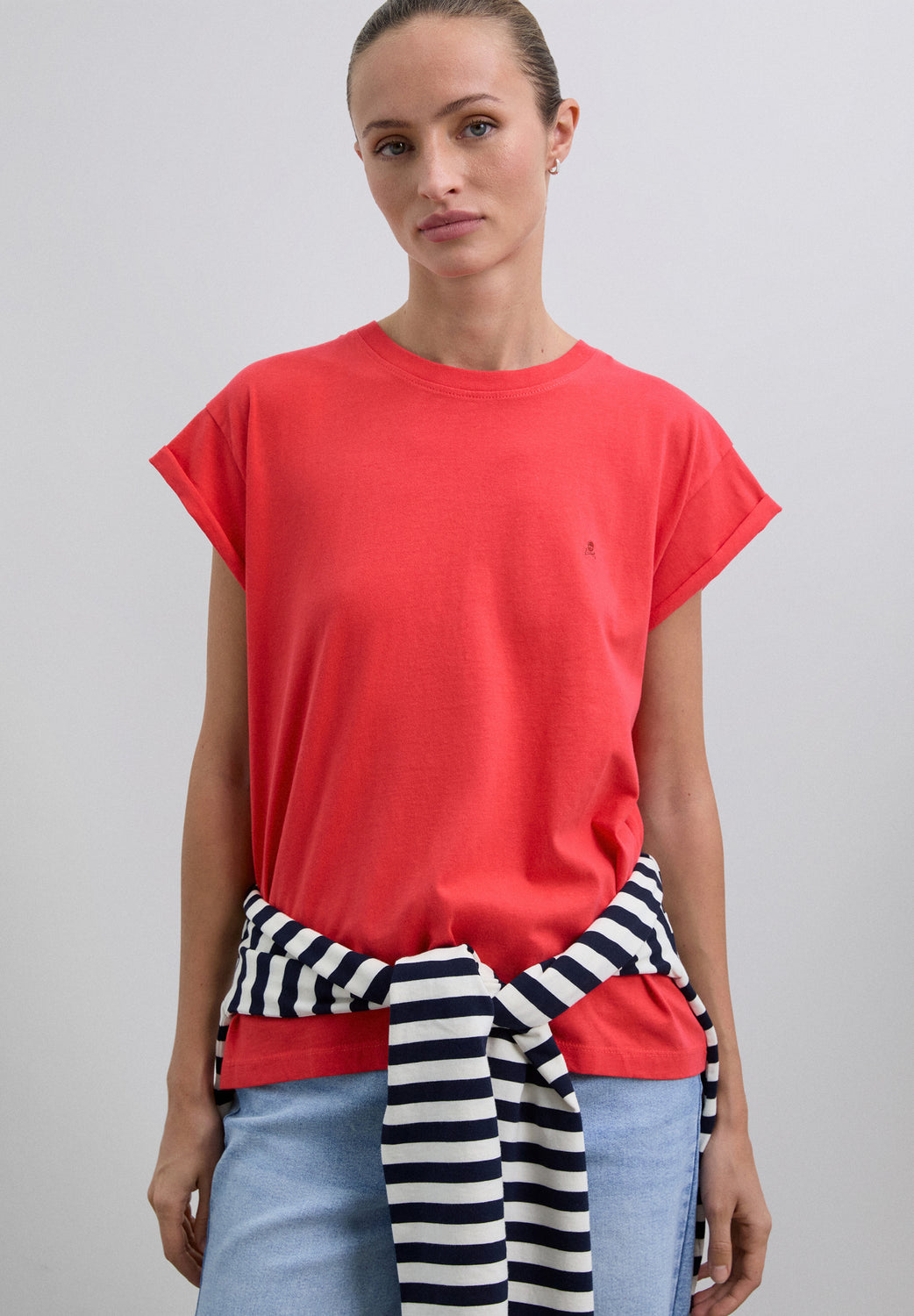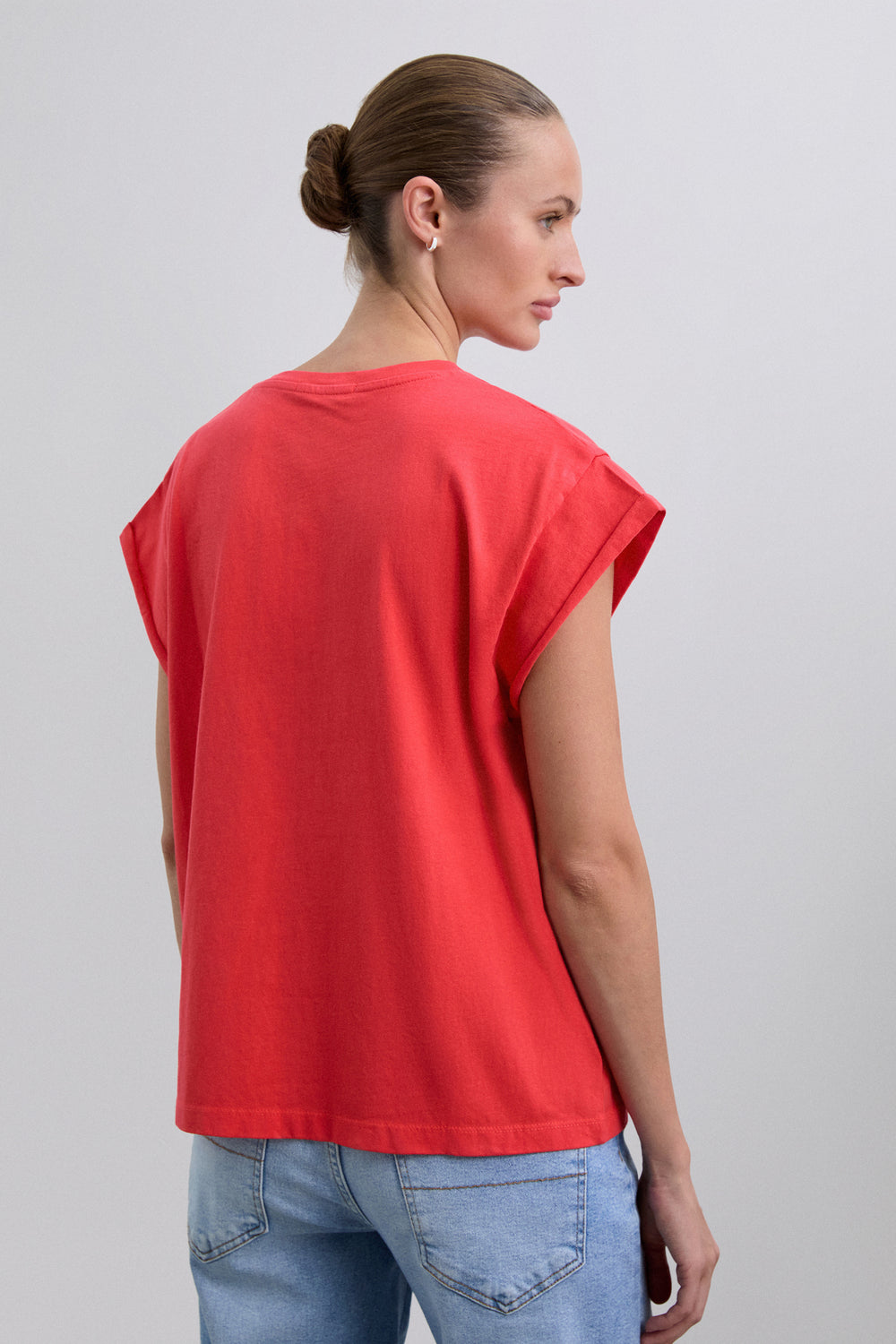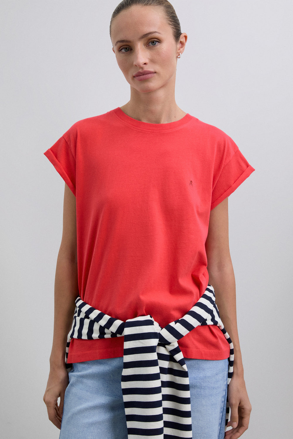 Camiseta confeccionada en 100% algodón orgánico. Corte regular fit, cuello redondo y manga sisa. Detalle de logo bordado a tono en pecho.