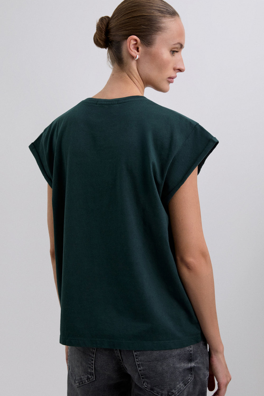 Camiseta confeccionada en 100% algodón orgánico. Corte regular fit, cuello redondo y manga sisa. Detalle de logo bordado a tono en pecho.