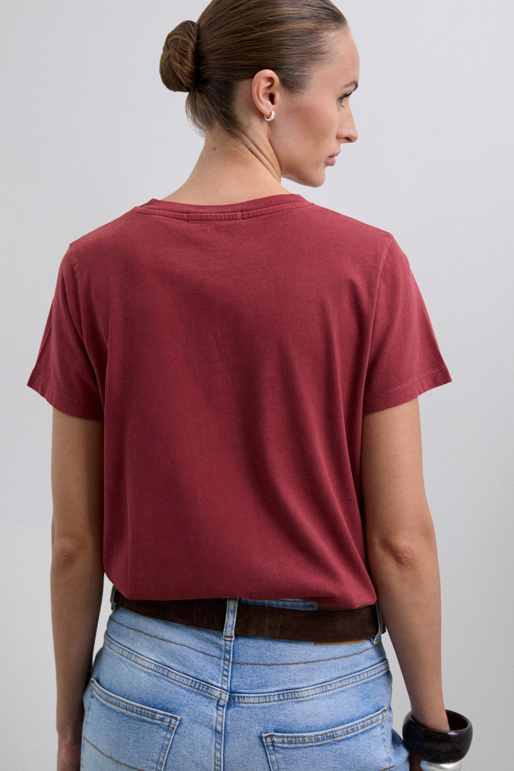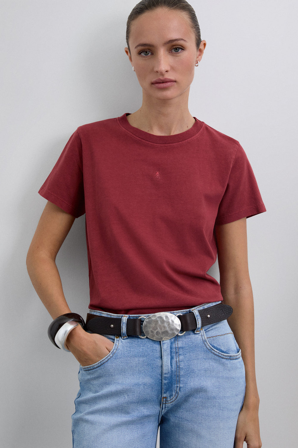 Camiseta básica confeccionada en 100% algodón orgánico. Corte regular fit, cuello redondo y manga corta. Detalle de logo bordado en frontal.