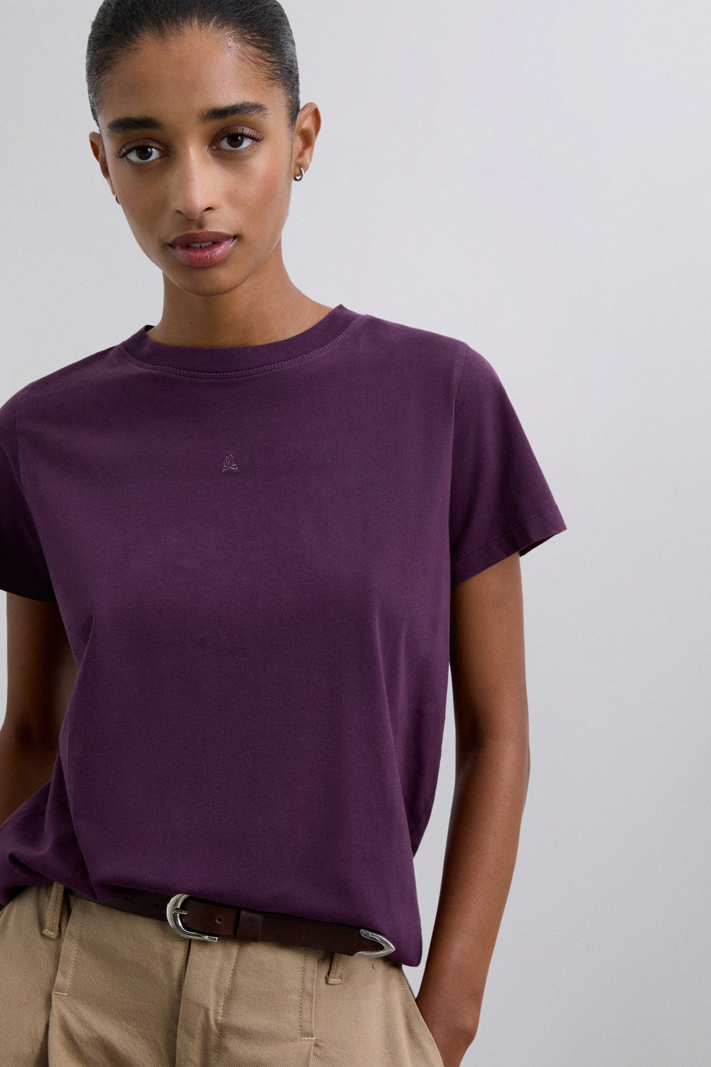 Camiseta básica confeccionada en 100% algodón orgánico. Corte regular fit, cuello redondo y manga corta. Detalle de logo bordado en frontal.