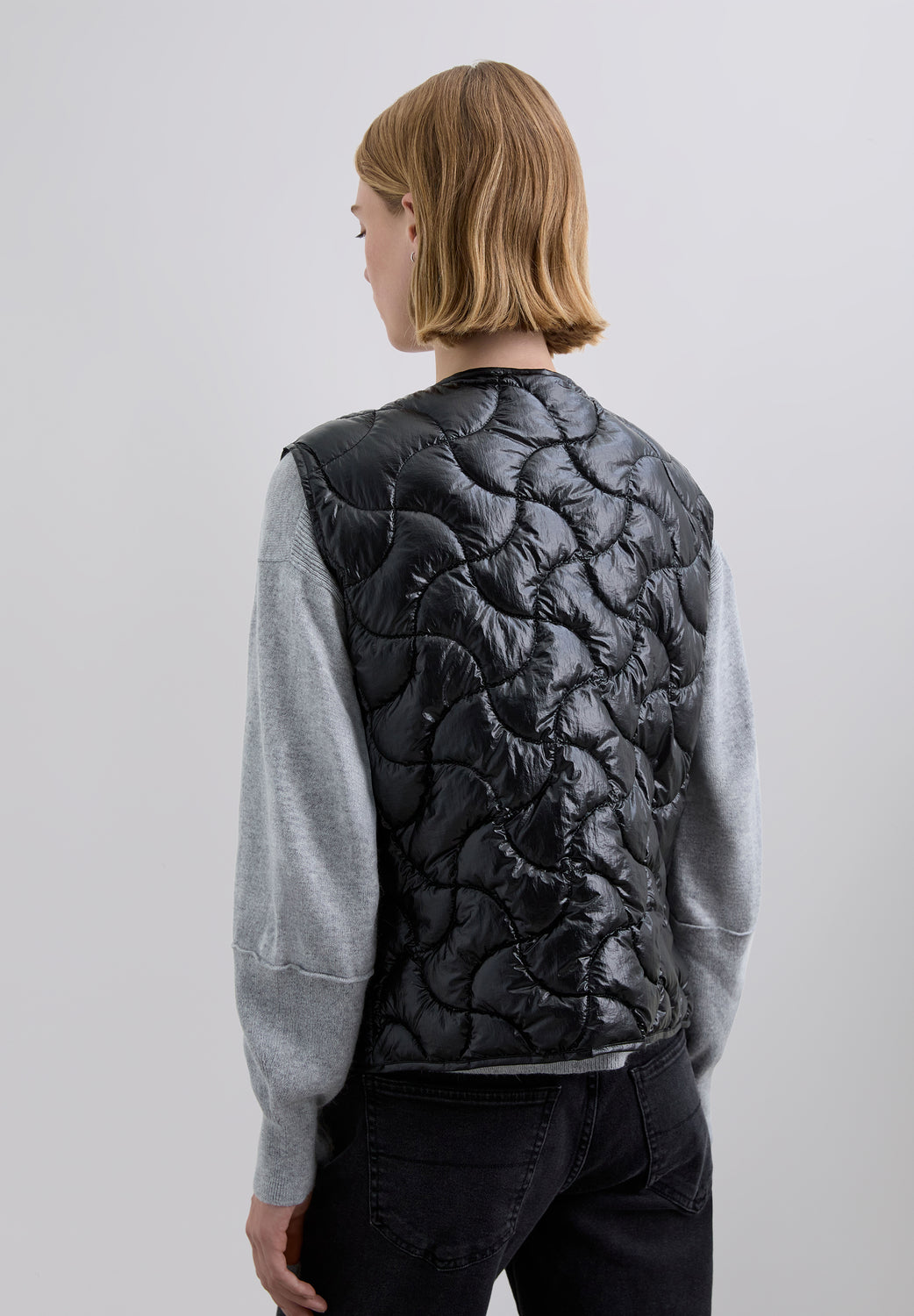 Chaleco acolchado confeccionado en tejido técnico. Motivo de patrón en costuras. Cierre mediante botones a presión en frontal.