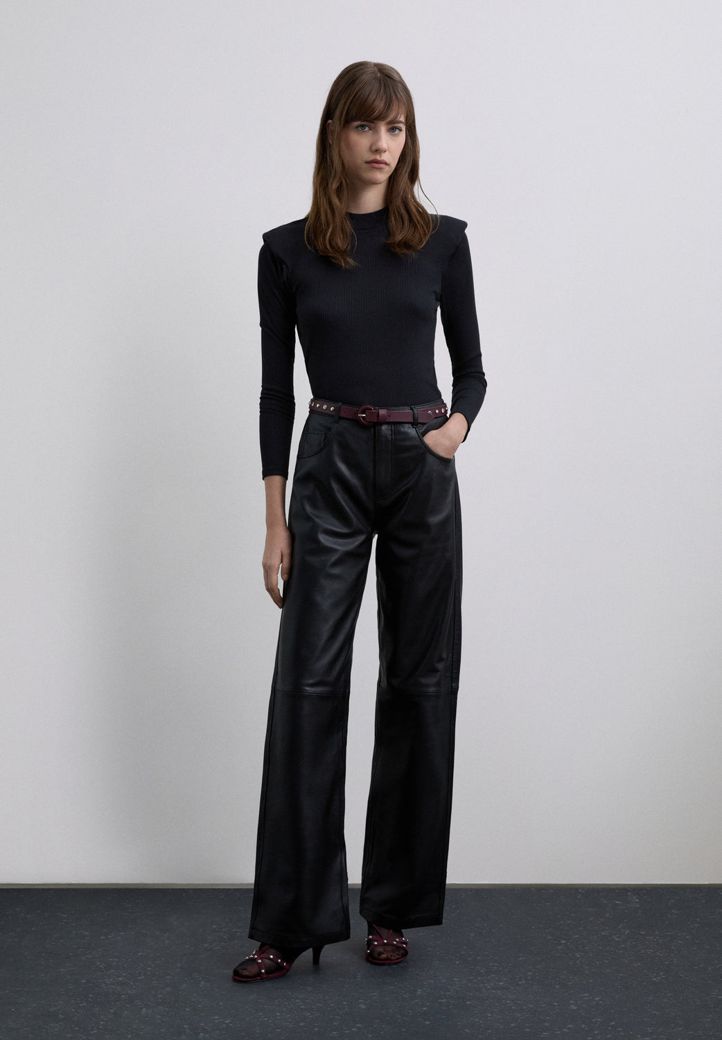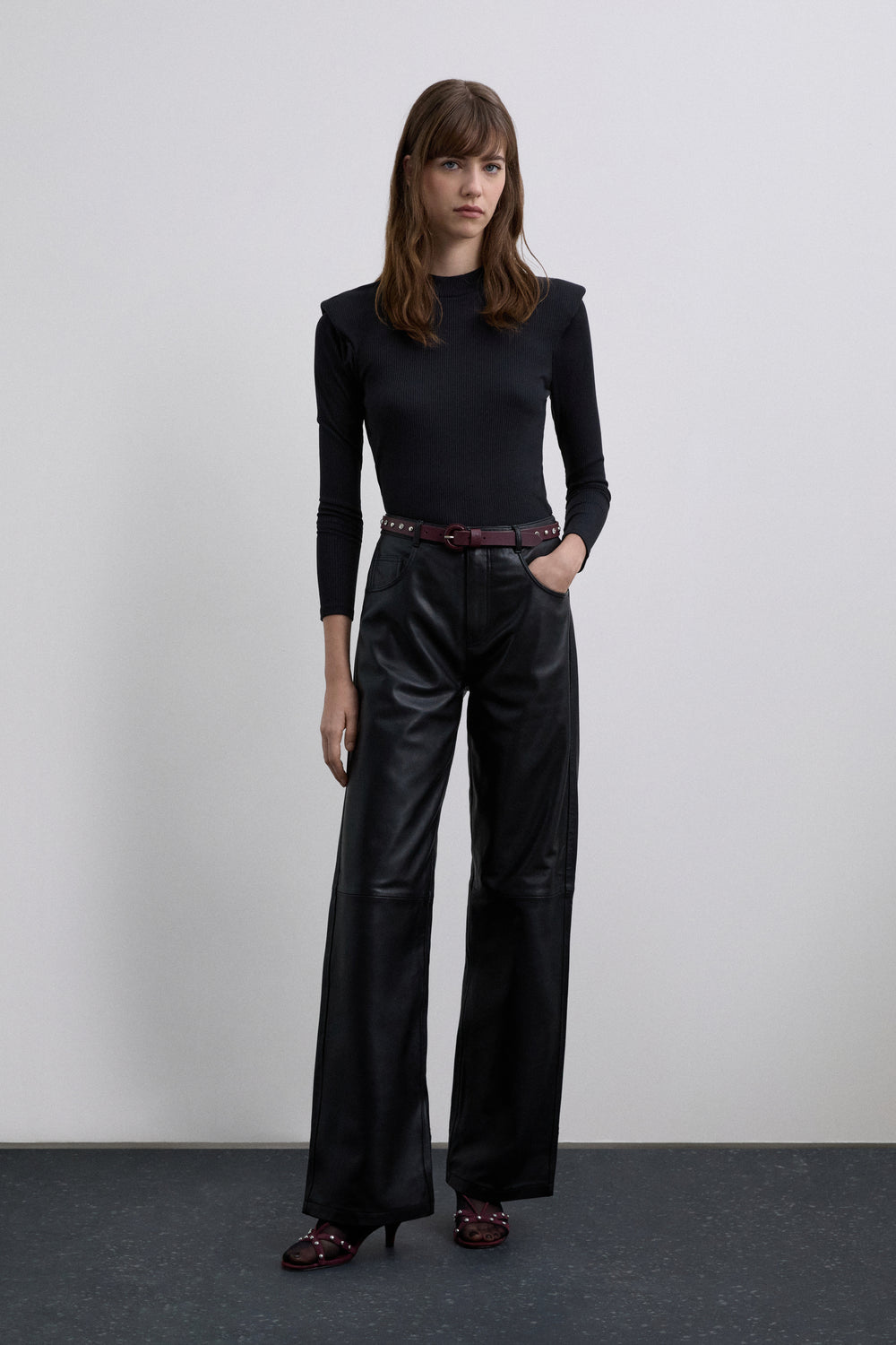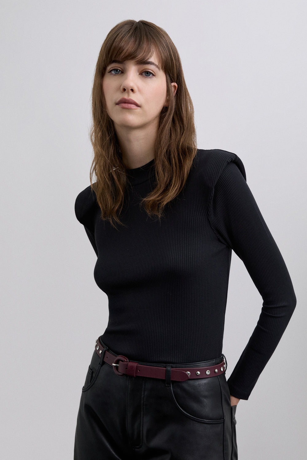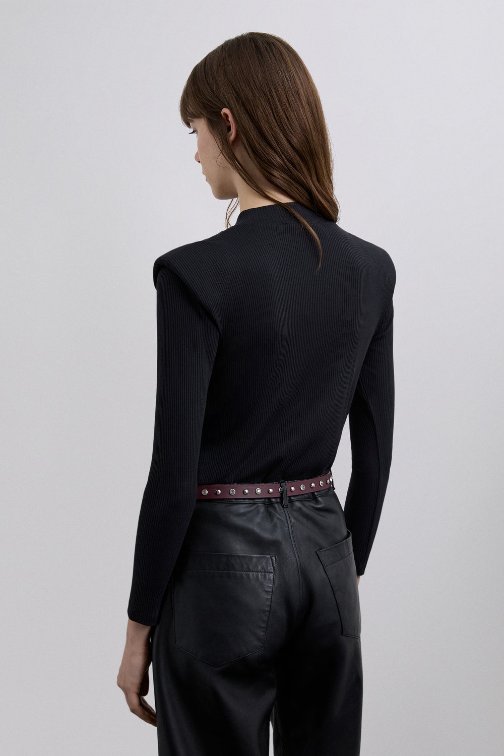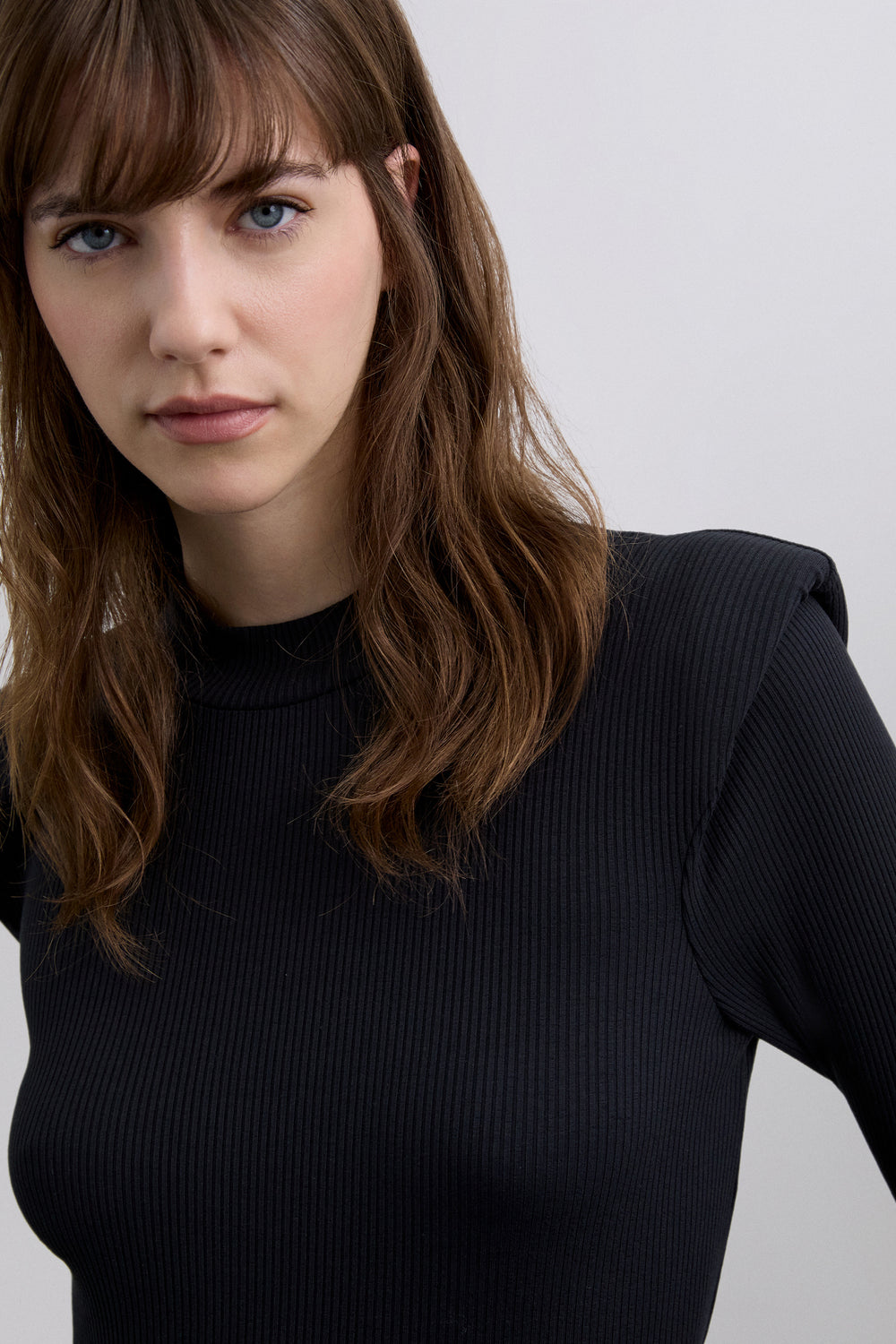 Top manga larga y cuello elevado, con diseño de hombrera. Regular Fit. Tejido stretch. Tejido con estructura.