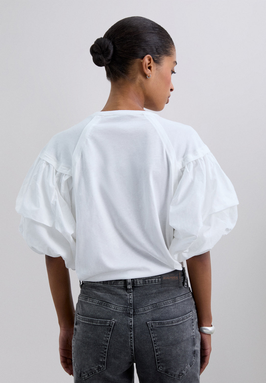 Camiseta confeccionada en 100% algodón BCI. Corte regular fit, cuello redondo y mangas abullonadas.