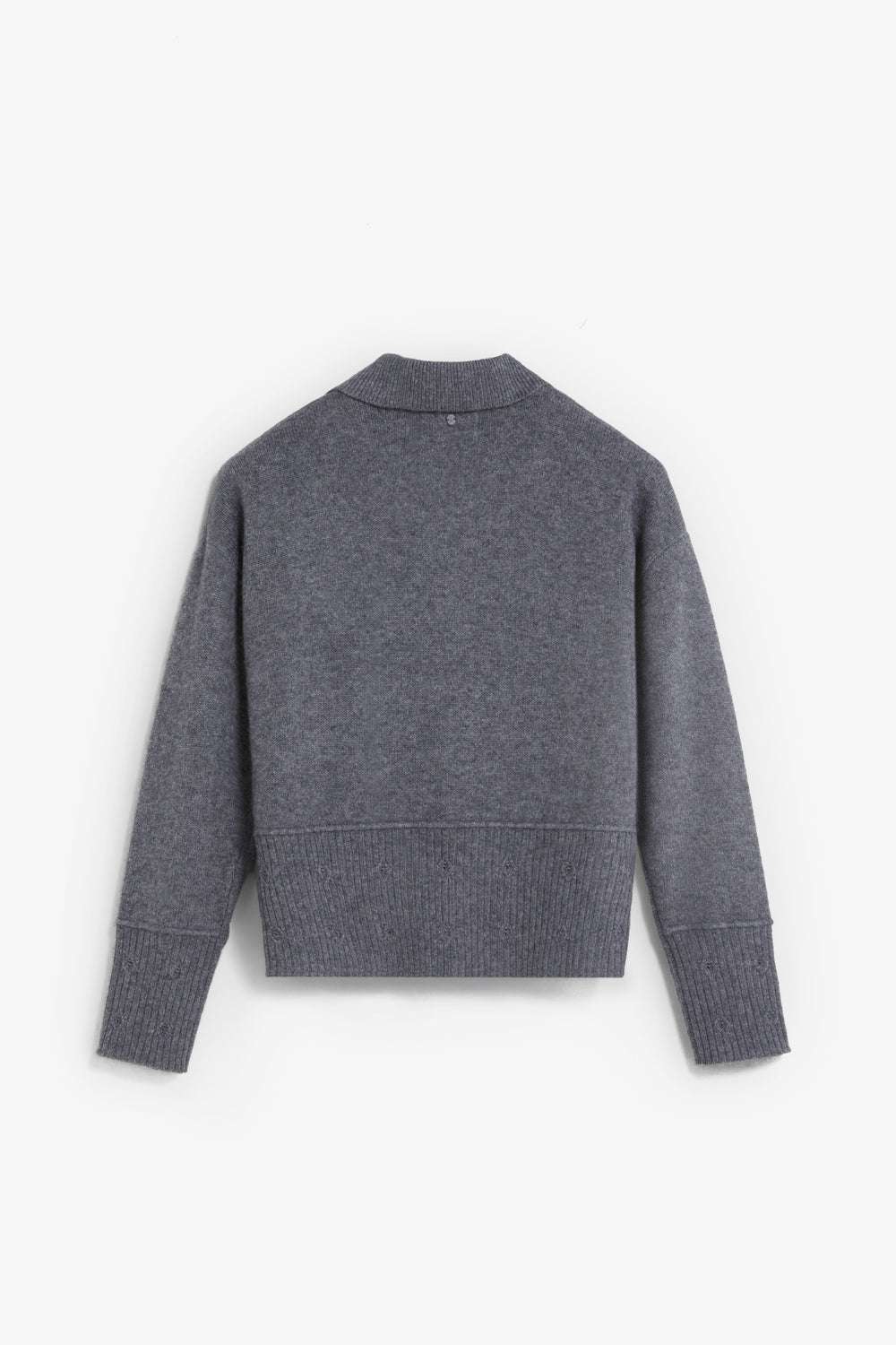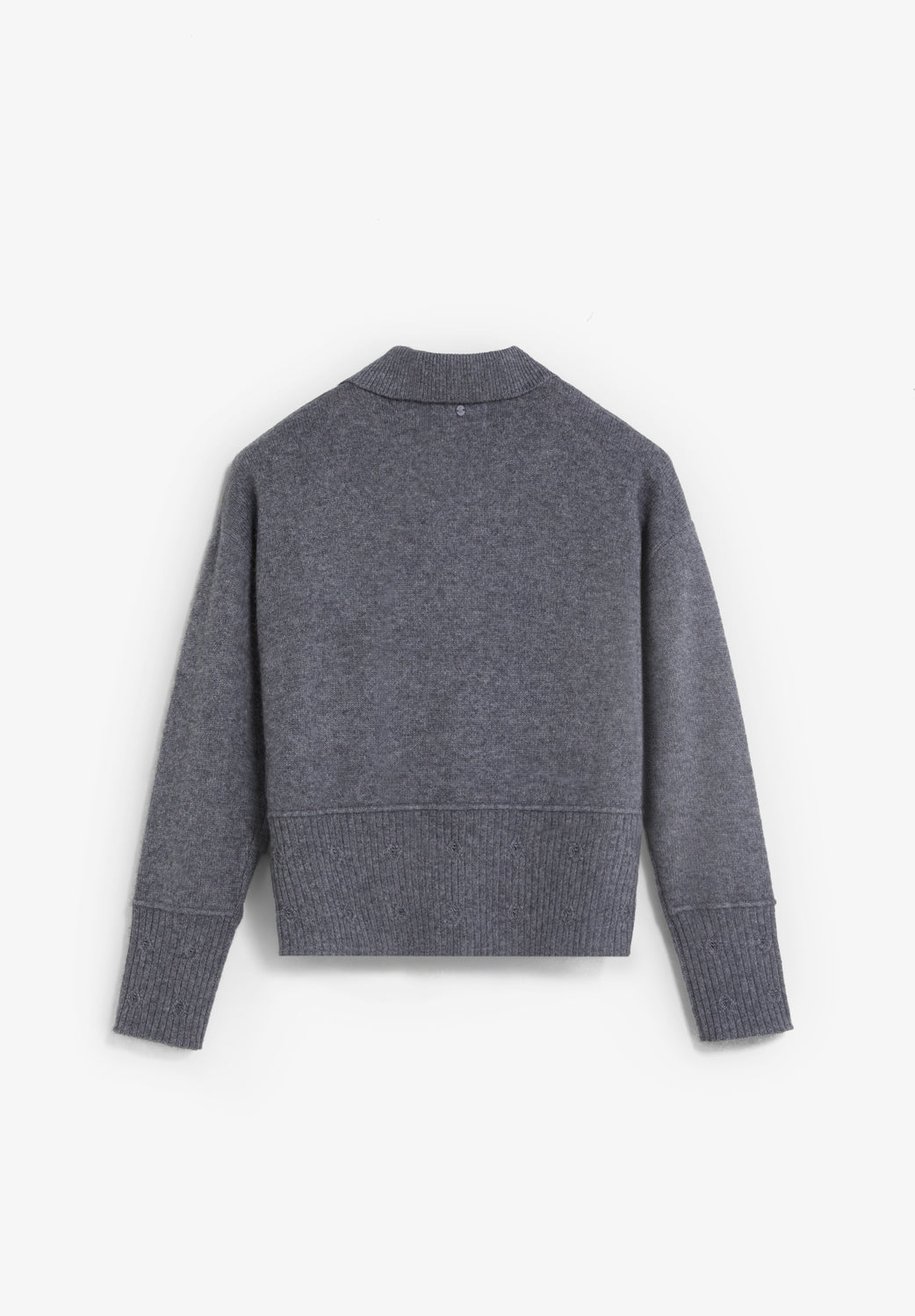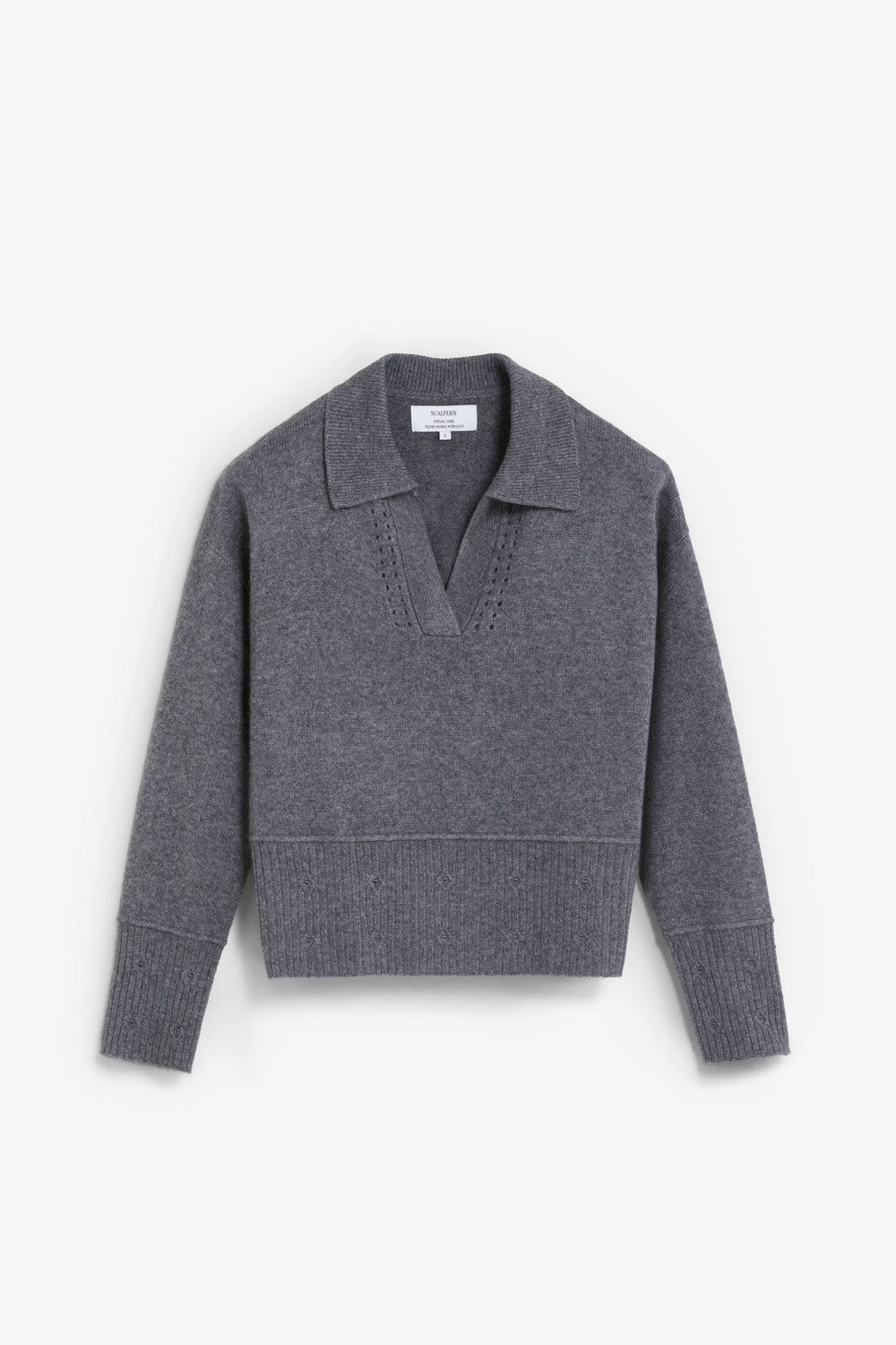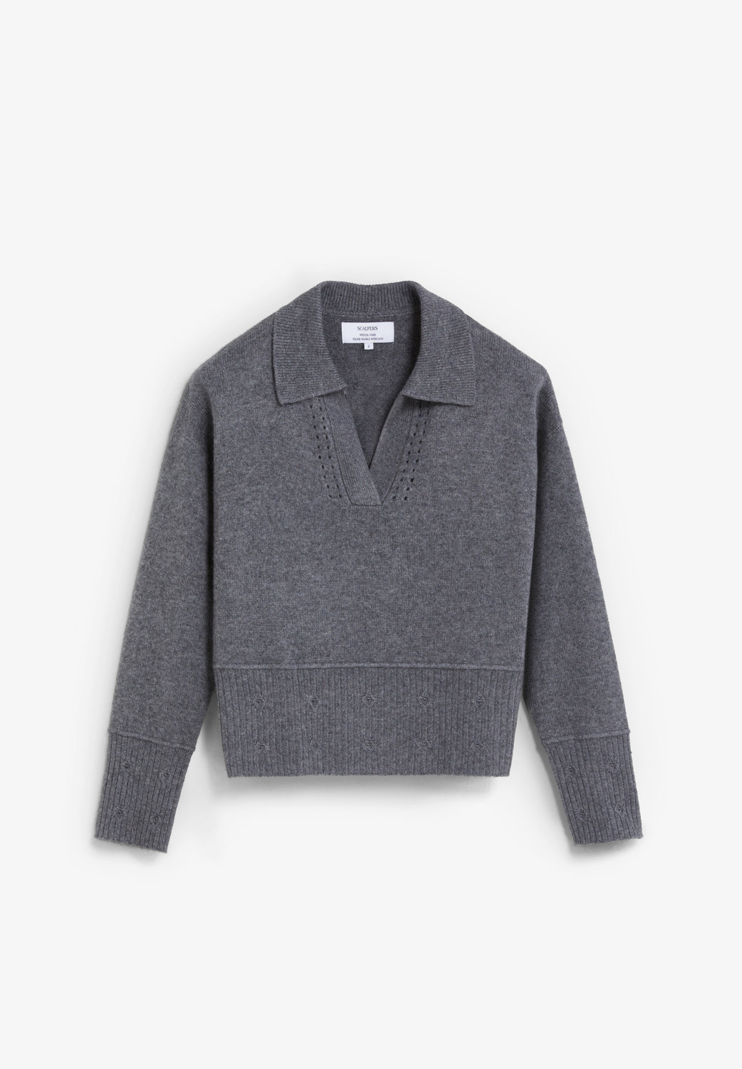 Jersey tipo polo confeccionado en mezcla de lana y cachemira. Cuello polero con detalles de aberturas en cuello. Regular fit. Manga larga con puños acabados en rib. Bajo acabado en rib con detalles en relieve.