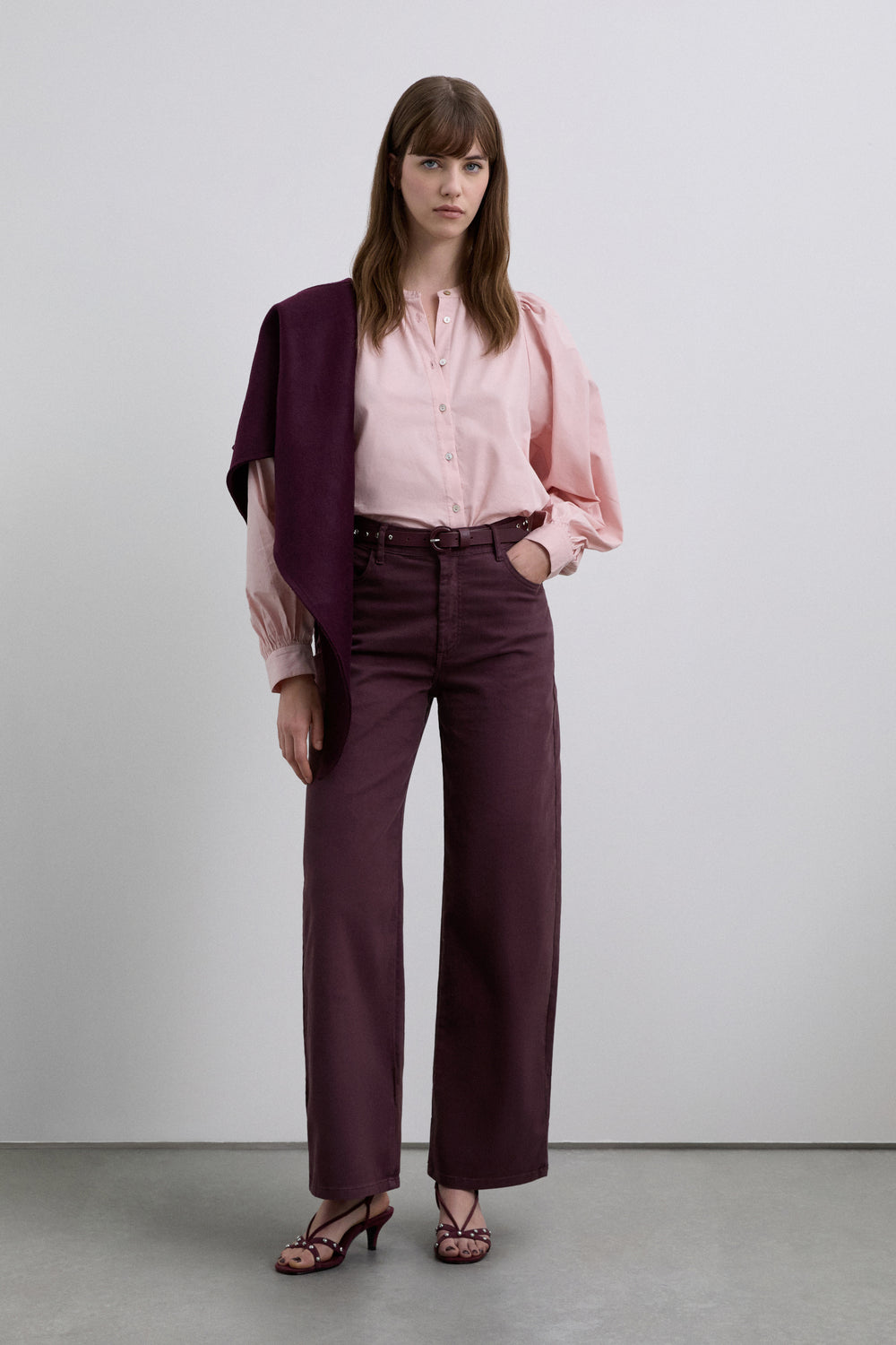 Camisa confeccionada en 100% algodón. Corte regular fit. Cuello mao. manga larga abullonada terminada en puño cerrado con botón. Cierre con botones de nácar.