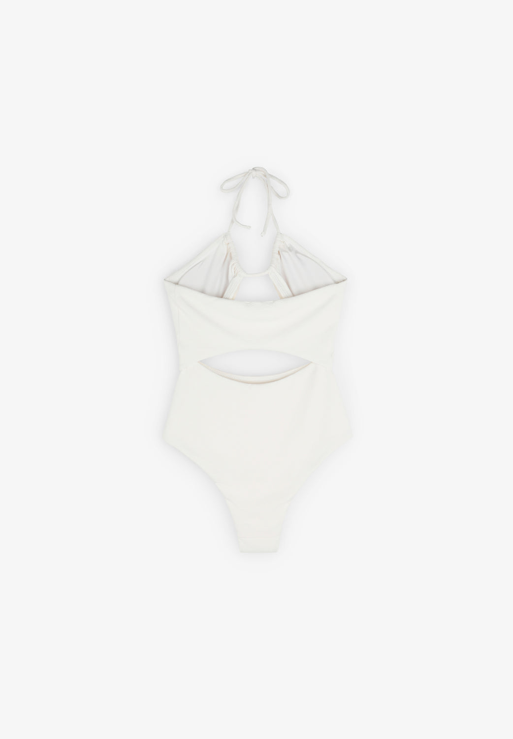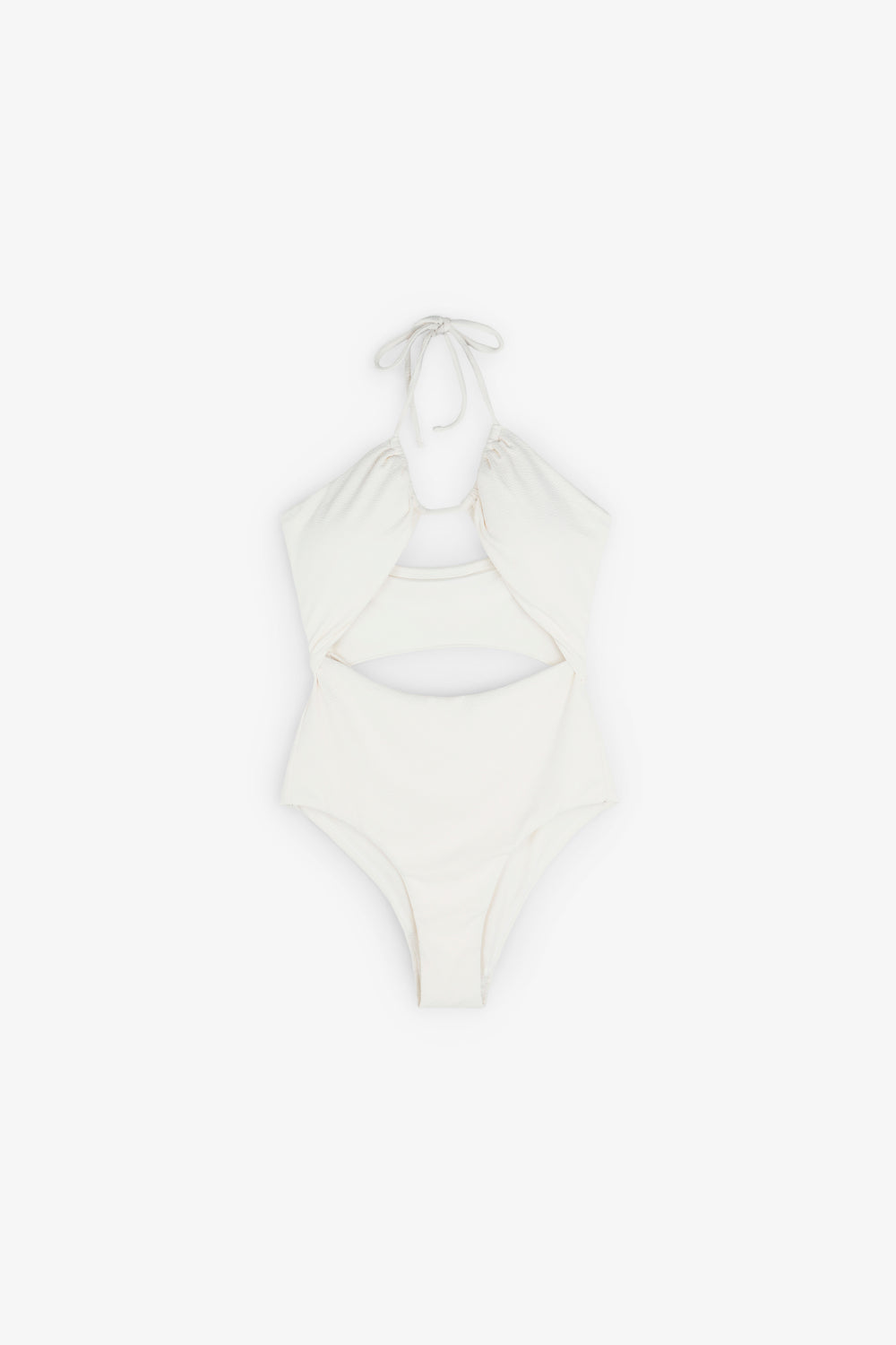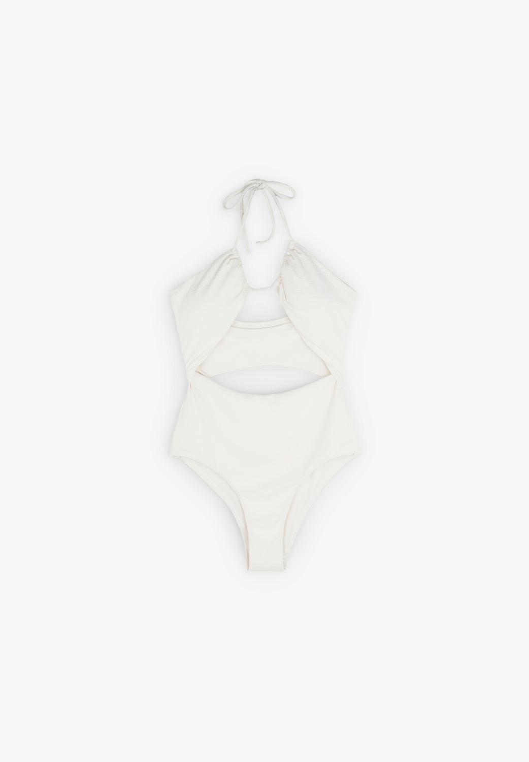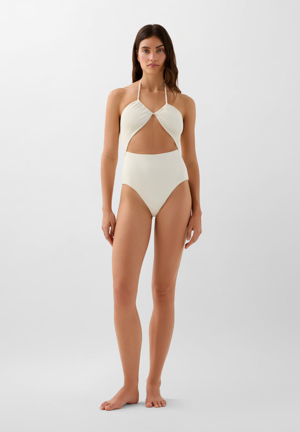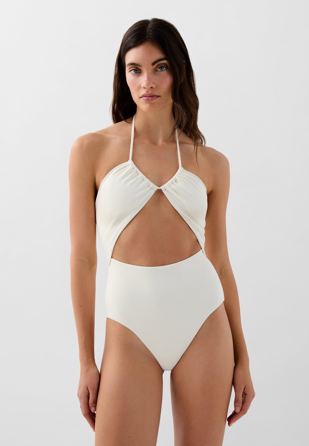 Este bañador está diseñado en colaboración con Scalpers y pertenece a la colección ROBIN x SCALPERS. Se trata de un Bañador cut out, con aberturas originales en la parte delantera y trasera, confeccionado en estructura de color cruda. Dispone de foams extraíbles, con frunce en el escote y tiras multiposición para un mejor ajuste. Completamente forrado.