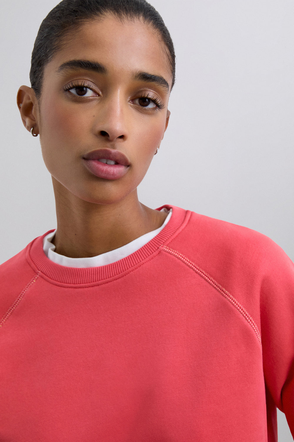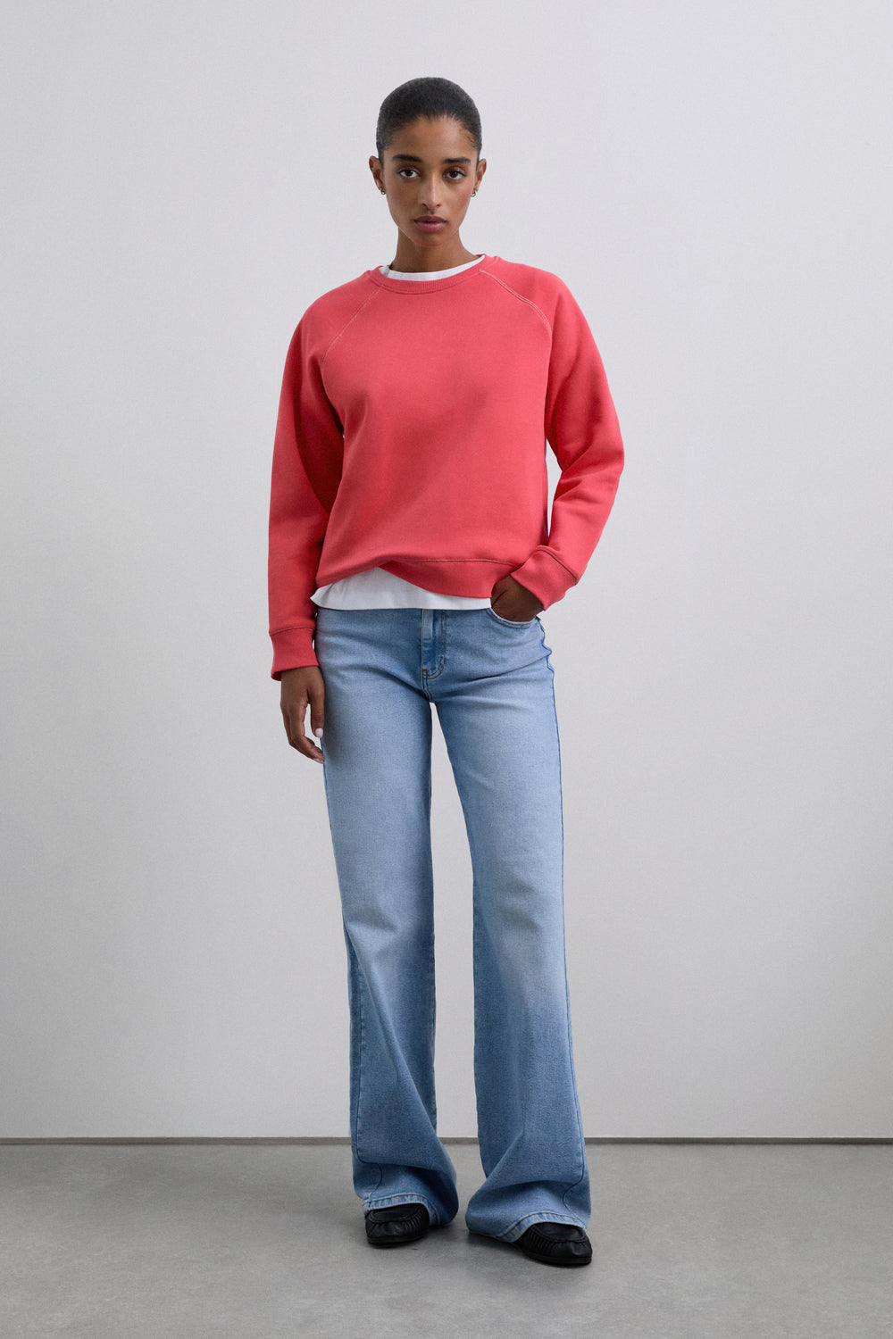 Sudadera confeccionada en algodón BCI con elastano. Corte regular fit, cuello redondo y manga larga con puños acabados en rib. Detalle de logo bordado en vertical en parte trasera.