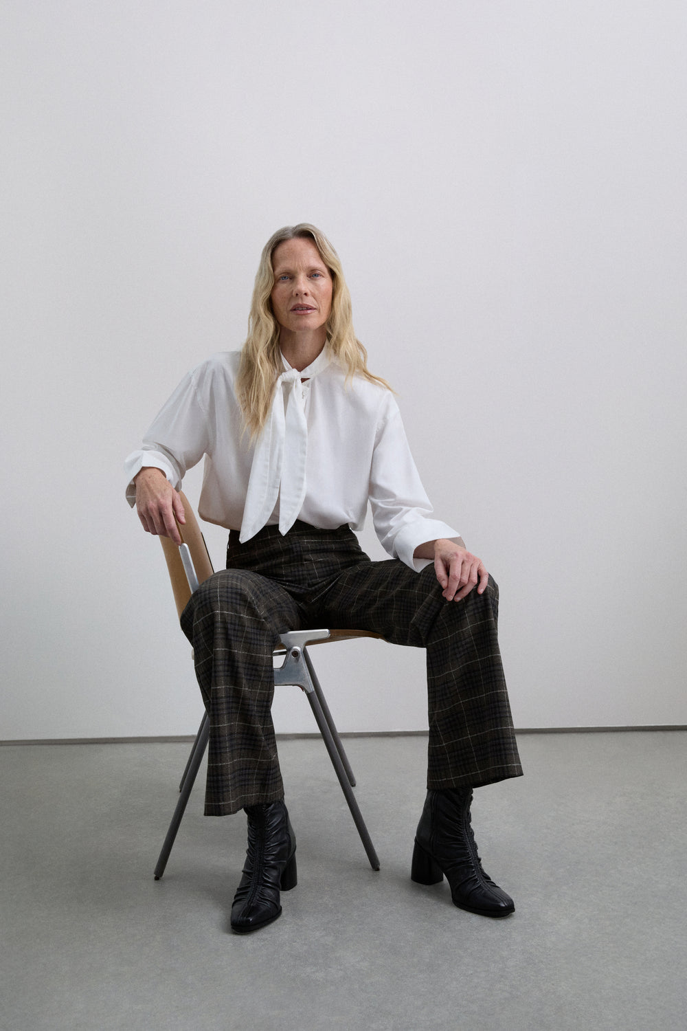 Camisa confeccionada en 100% algodón BCI. Regular fit. Cuello con lazo. Cierre mediante botones. Manga larga con puños terminados con botones. Pinzas en parte trasera.