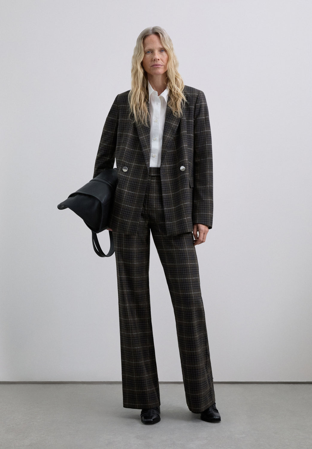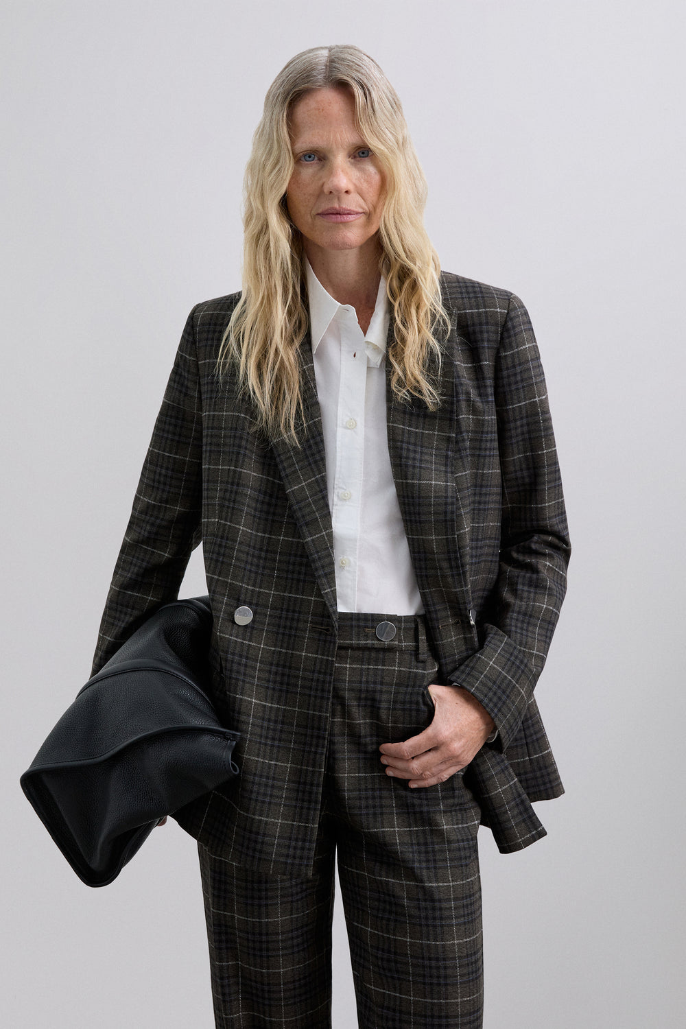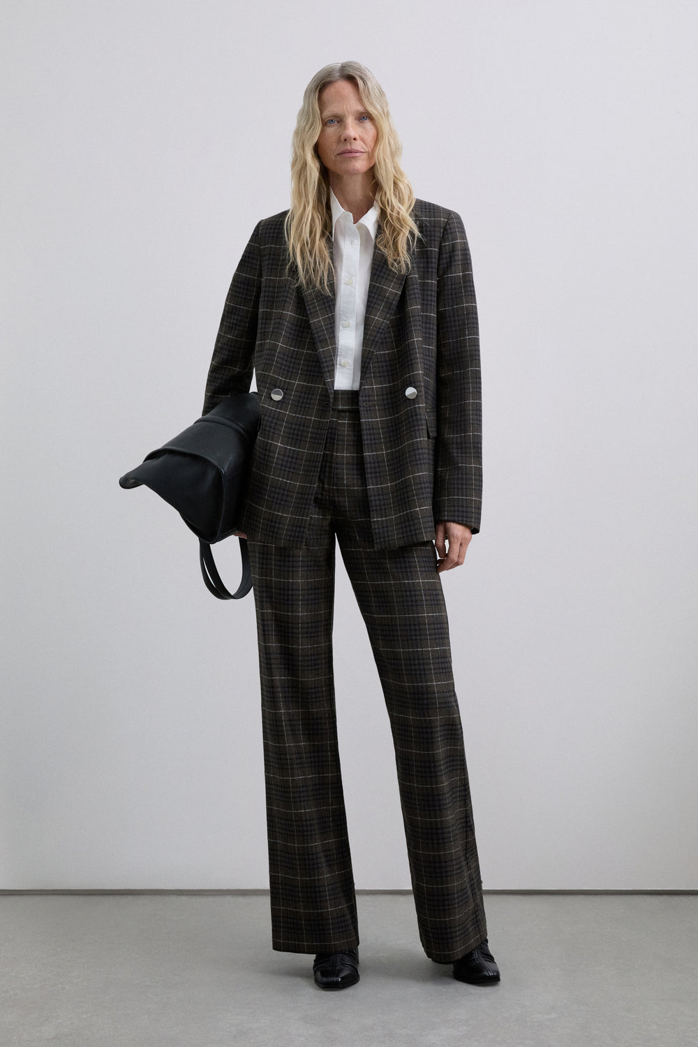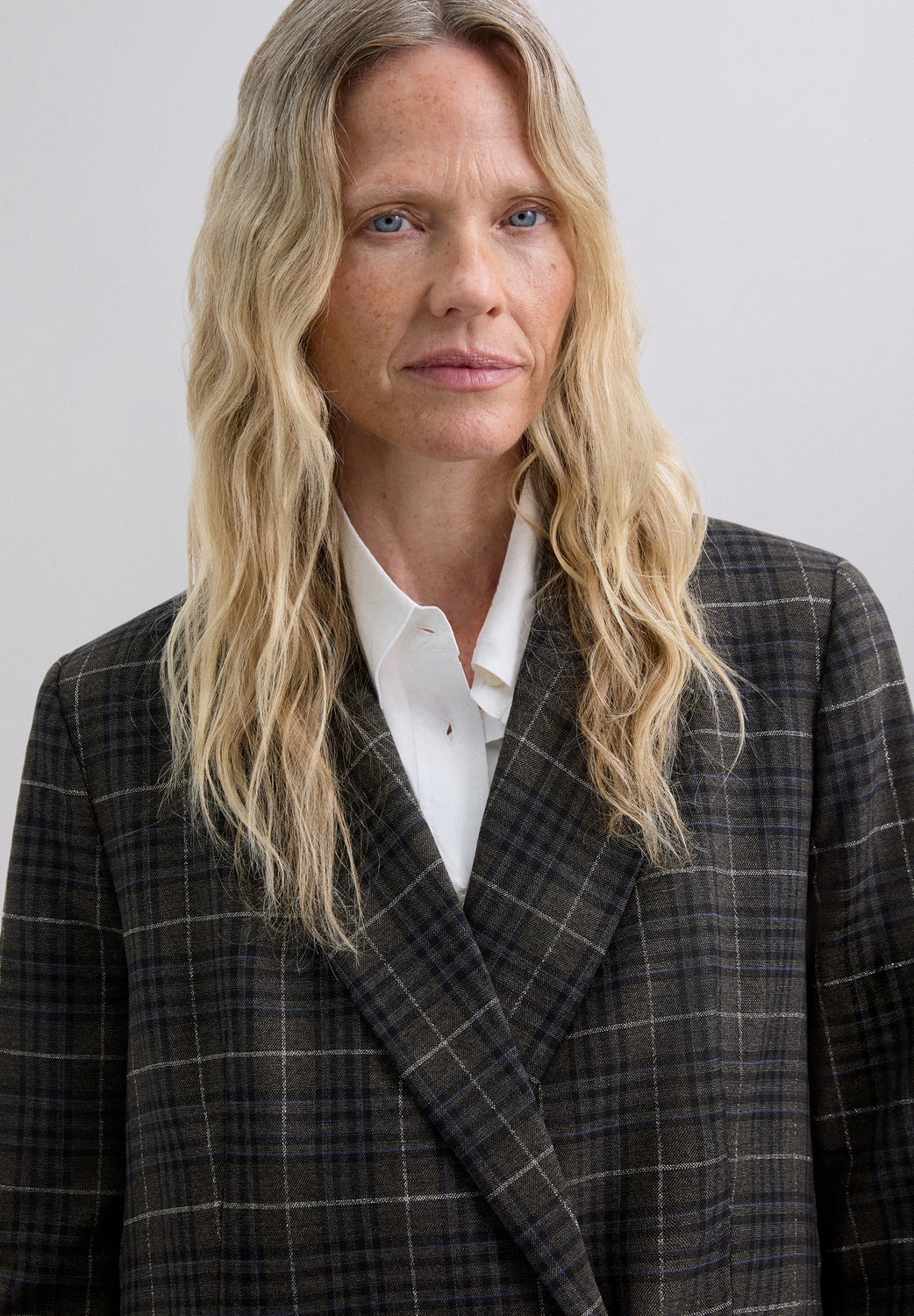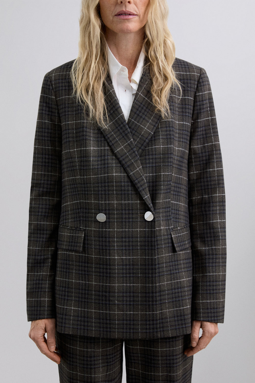 Blazer cruzada con estampado de cuadros. Cuello con solapa. Cierre mediante botones de doble botonadura. Manga larga. Bolsillos con tapeta frontales.