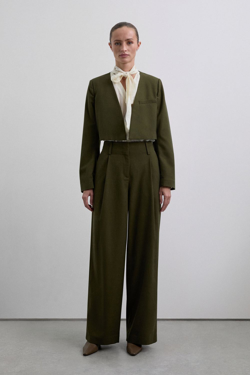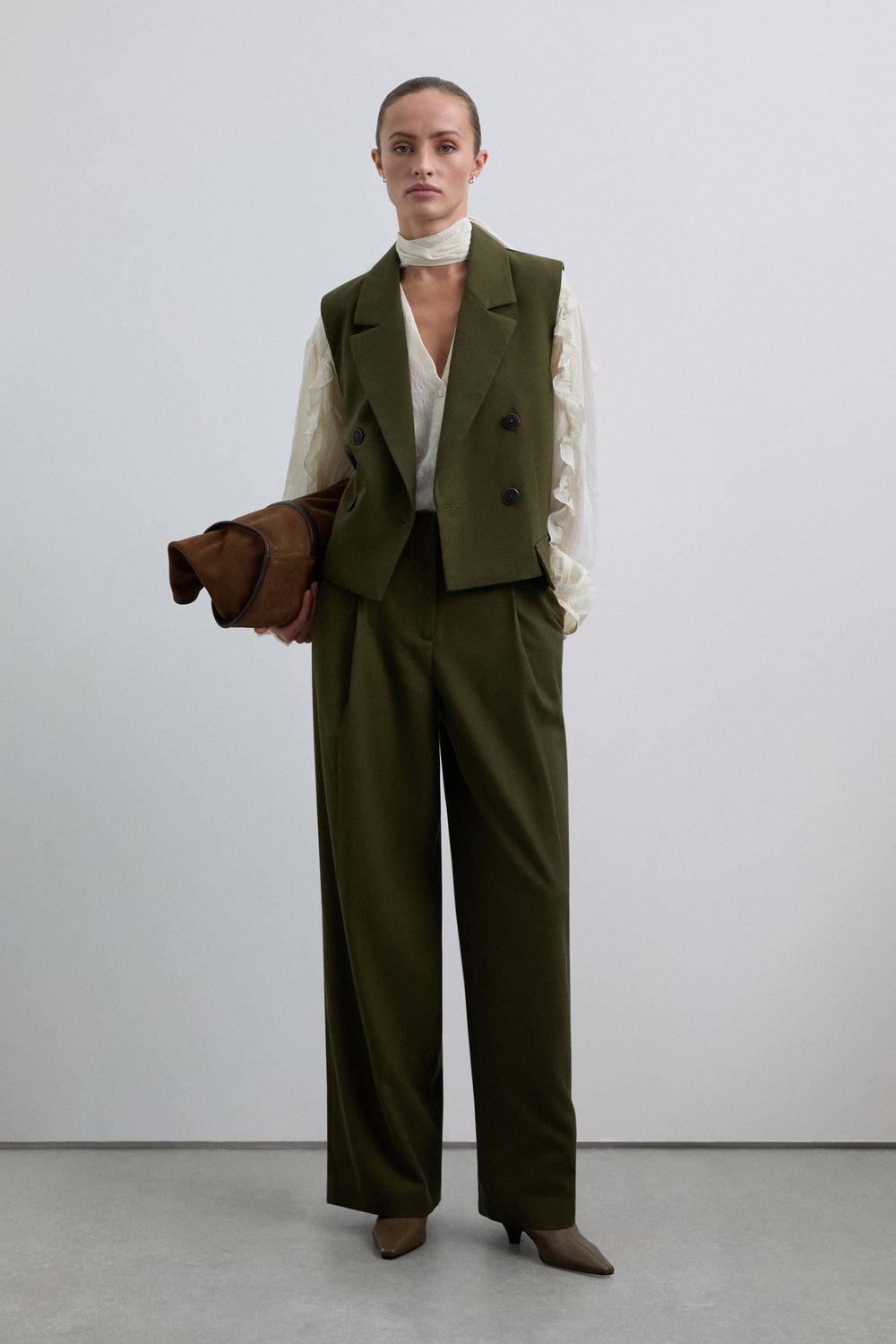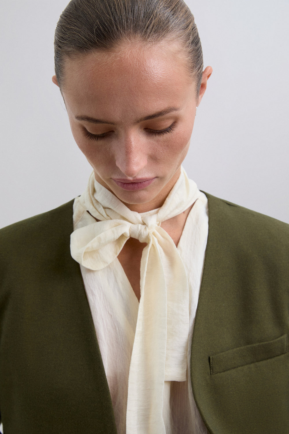 Blazer confeccionada en mezcla de viscosa. Desmontable en chaleco y torera. Chaleco con cuello de solapa, manga en sisa, cierre de botones y ajustable en parte trasera. Torera cropped, cuello sin solapa, manga larga y bolsillo en pecho de vivo.