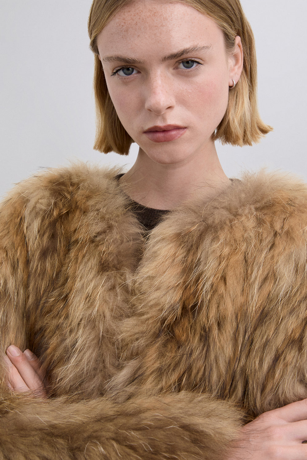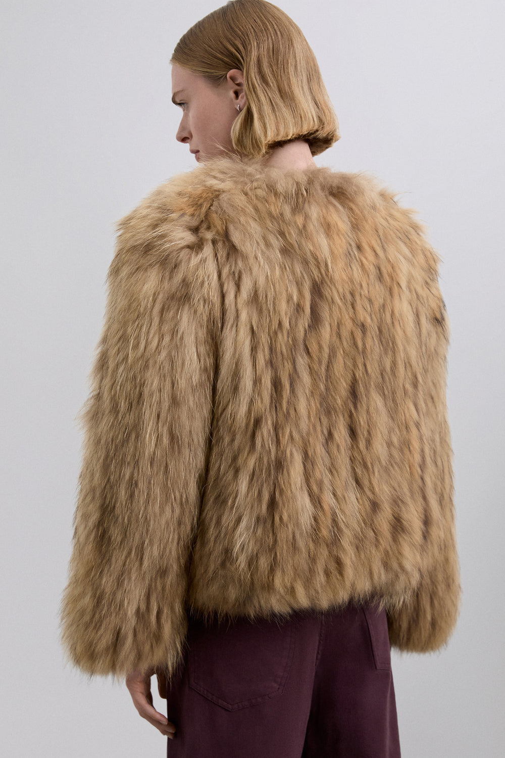 Chaqueta confeccionada 100% pelo de racoon natural. Manga larga. Corte medio a la cadera.