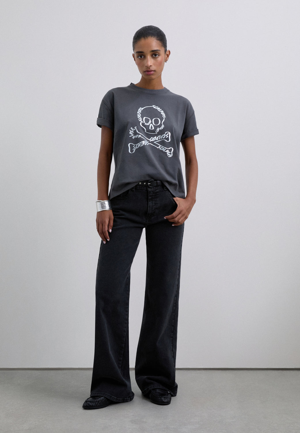 Camiseta confeccionada en 100% algodón. Regular fit. Print frontal con calavera. Cuello redondo. Manga corta. Detalle de costuras en espalda.