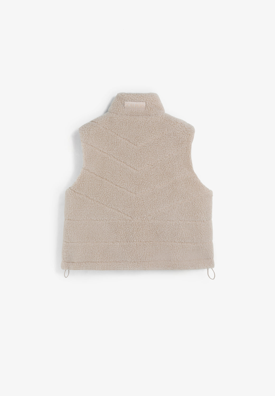 Chaleco de forro polar recortado. Ajuste entallado. Dos bolsillos frontales. Dobladillo ajustable con cordón. Cuello alto. Cierre frontal con cremallera.