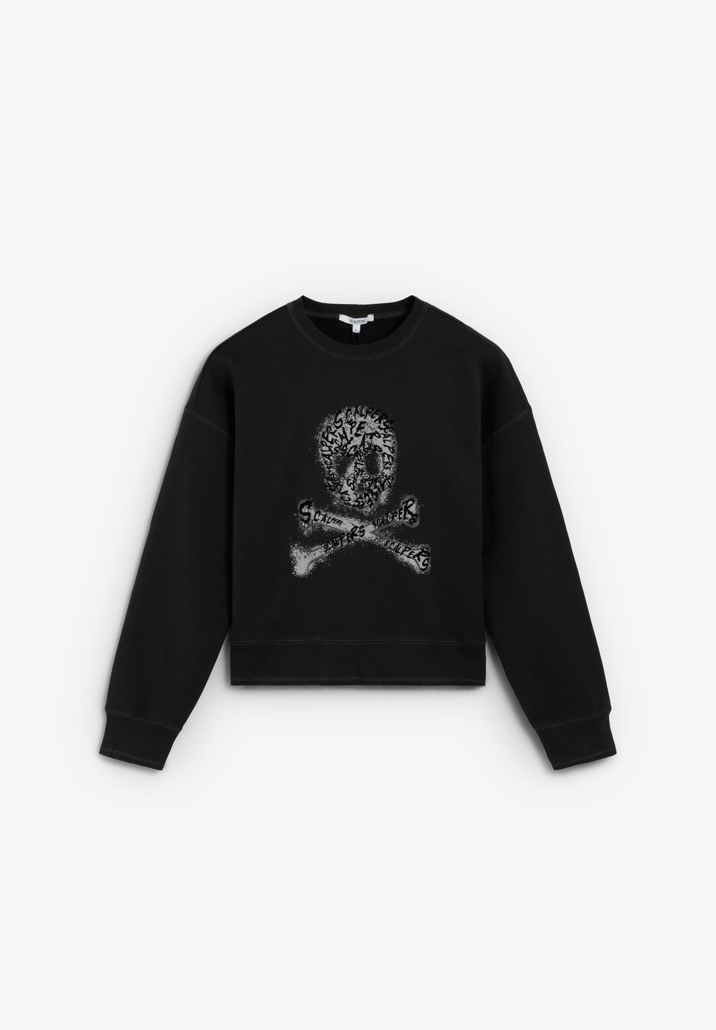 Sudadera confeccionada en algodón BCI con elastano. Corte regular fit, cuello redondo y manga larga con puños acabados en rib. Print de calavera frontal con flock.