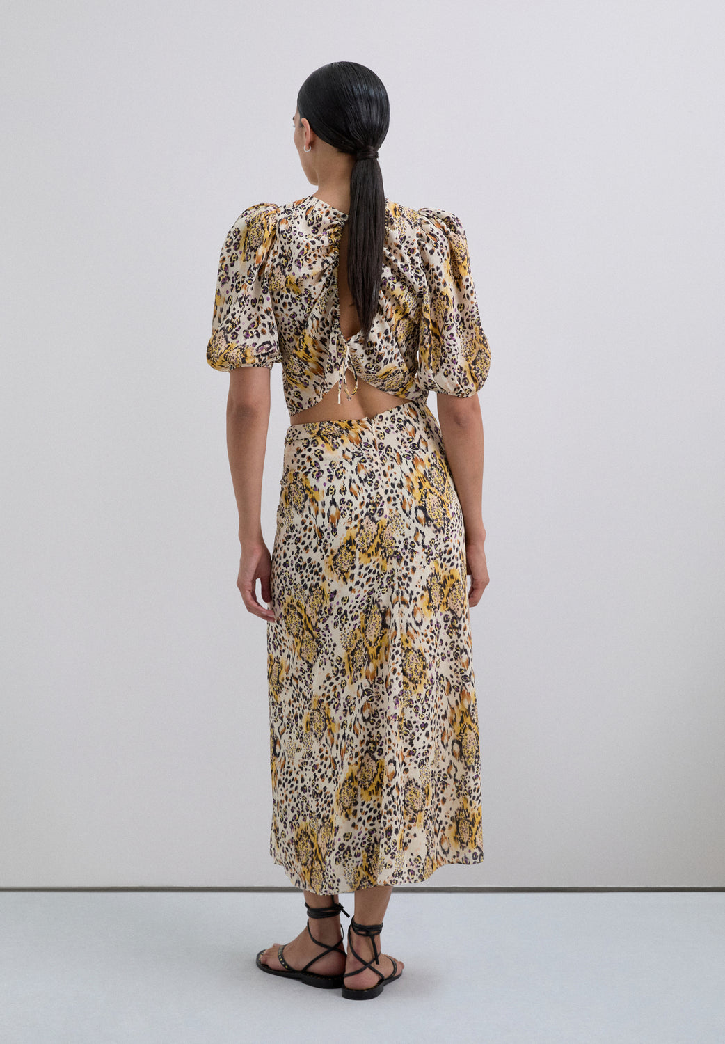Falda midi estampada animal print. Corte regular fit. Cintura elástica.