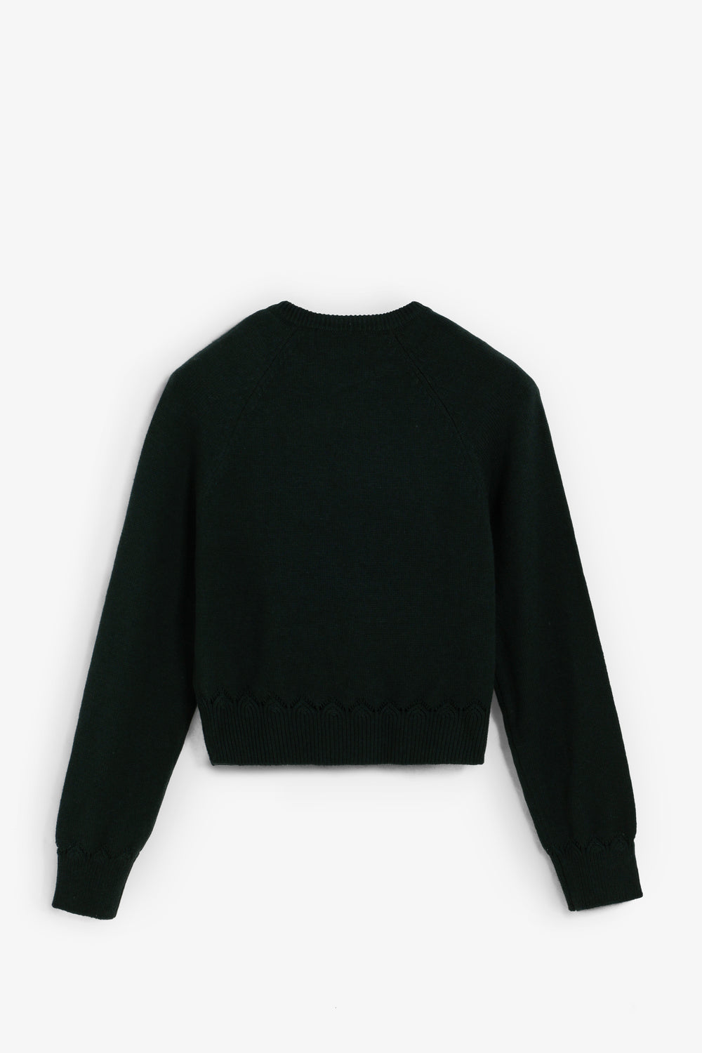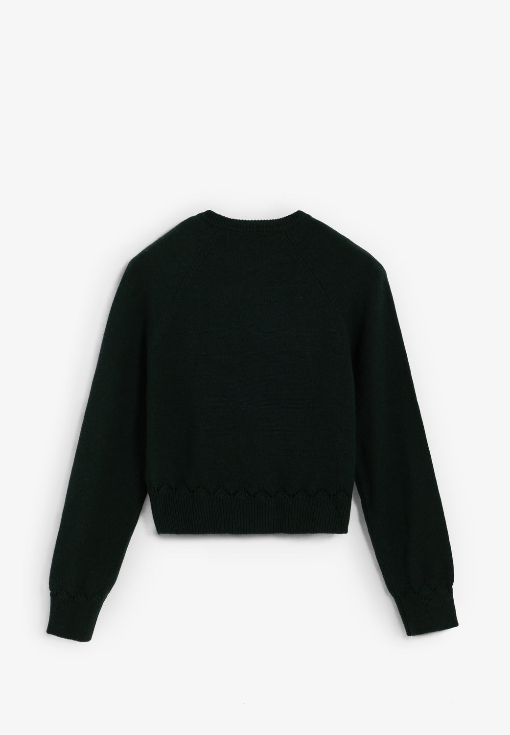 Jersey confeccionado en mezcla de lana. Regular fit. Cuello redondo con cinta terminada con cuentas. Manga larga ranglan con aberturas delanteras y terminación en puños acabados con patrón decorativo.