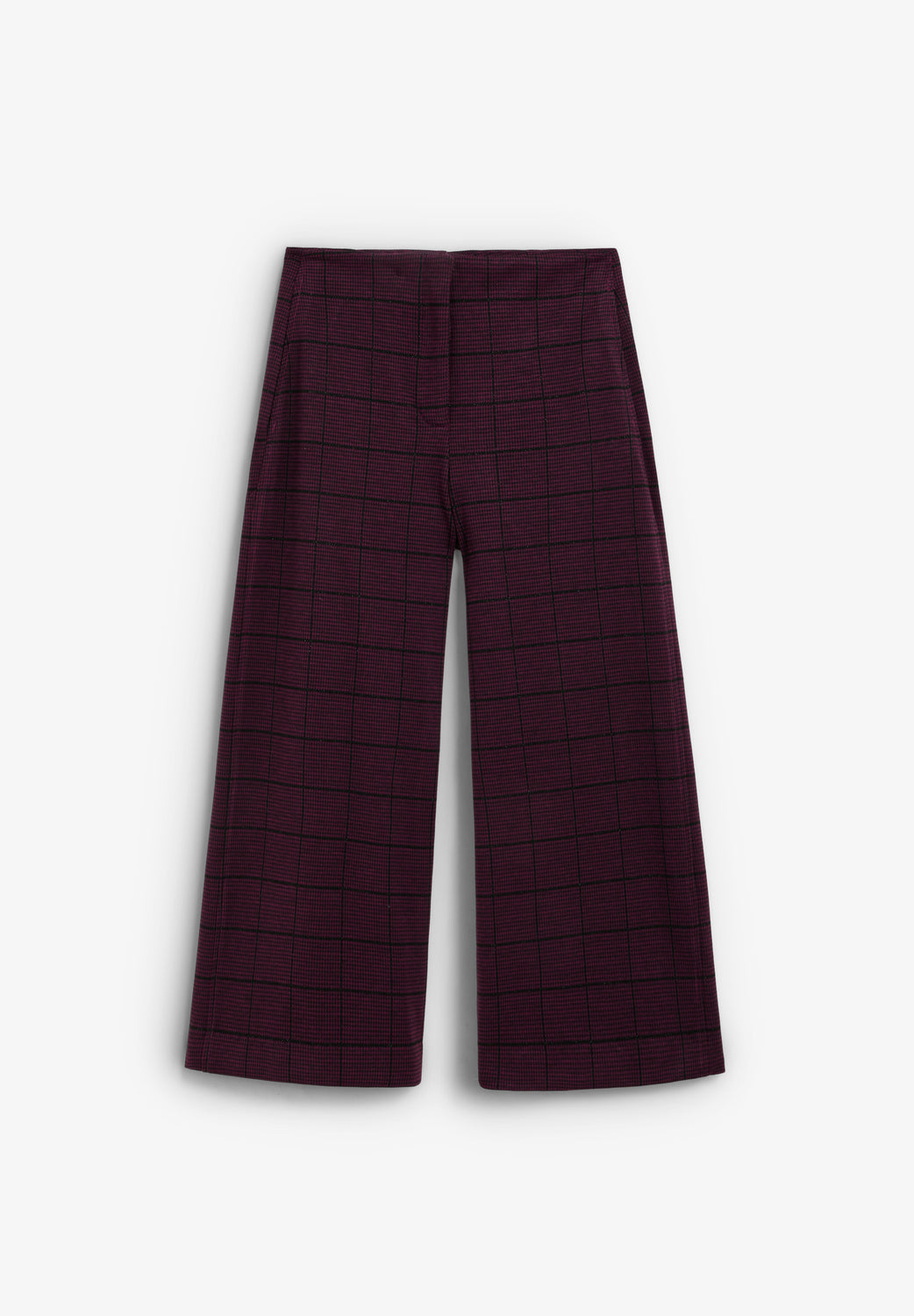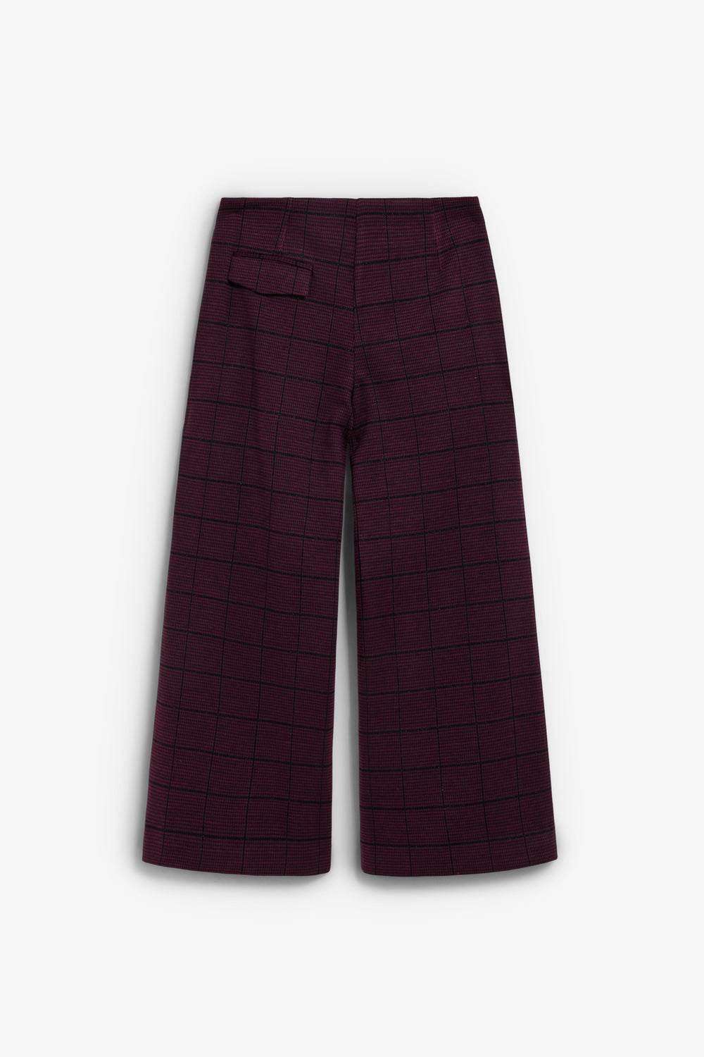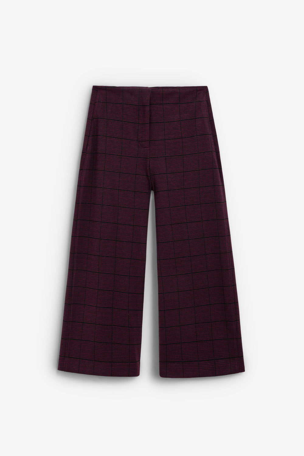 Pantalón culotte de rayas. Tiro alto. Bolsillos laterales y cierre delantero con cremallera.