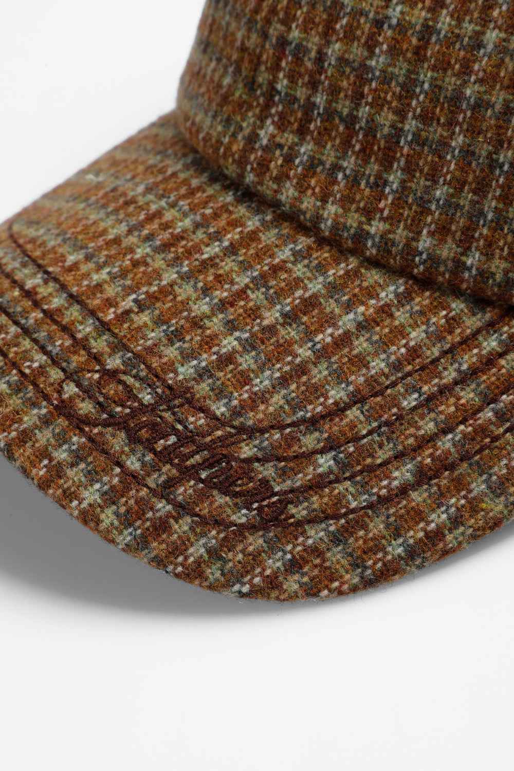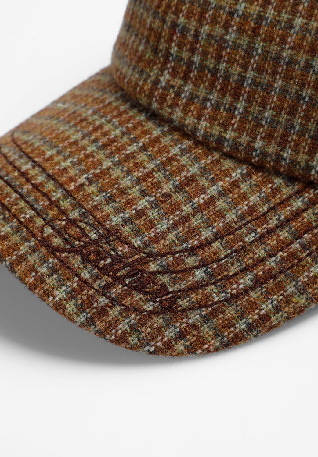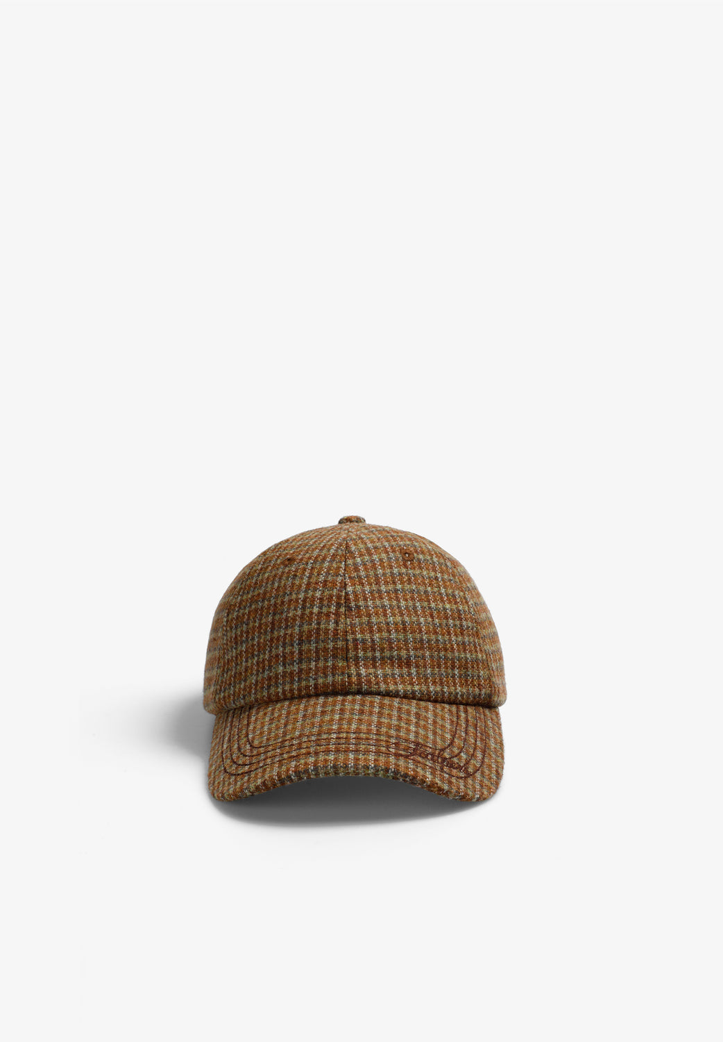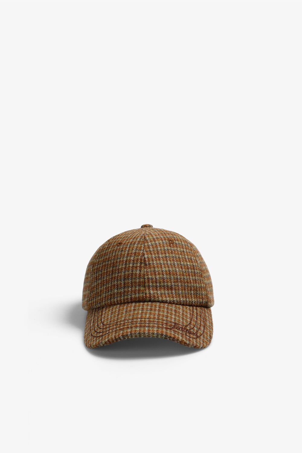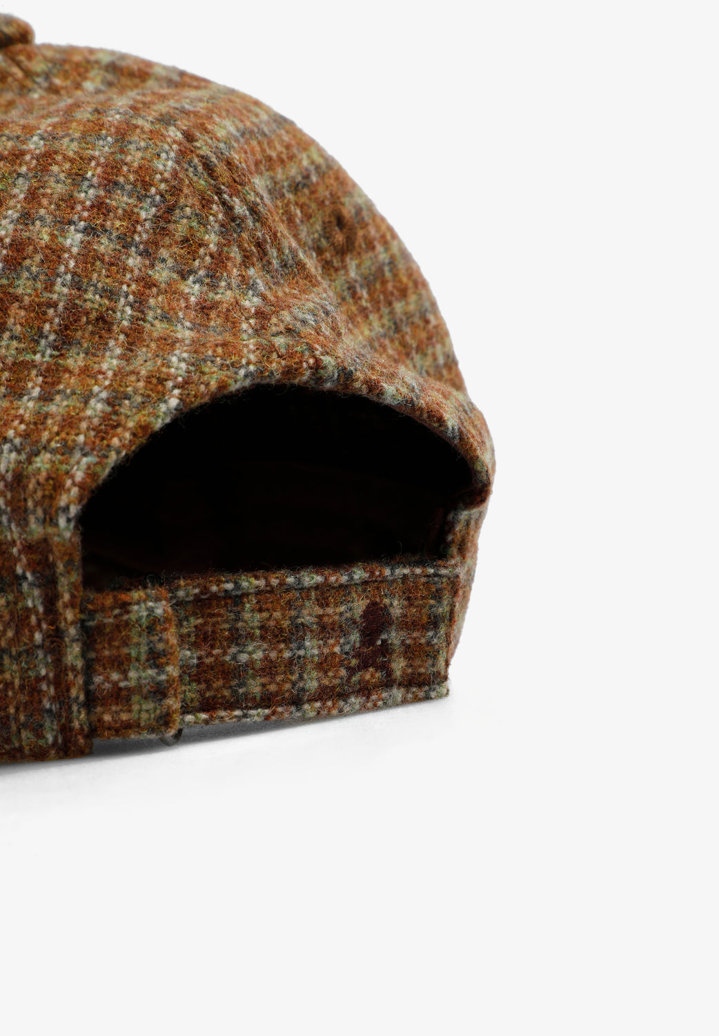 Gorra confeccionada en mezcla de lana. Ajustable y estampada en tejido de cuadros