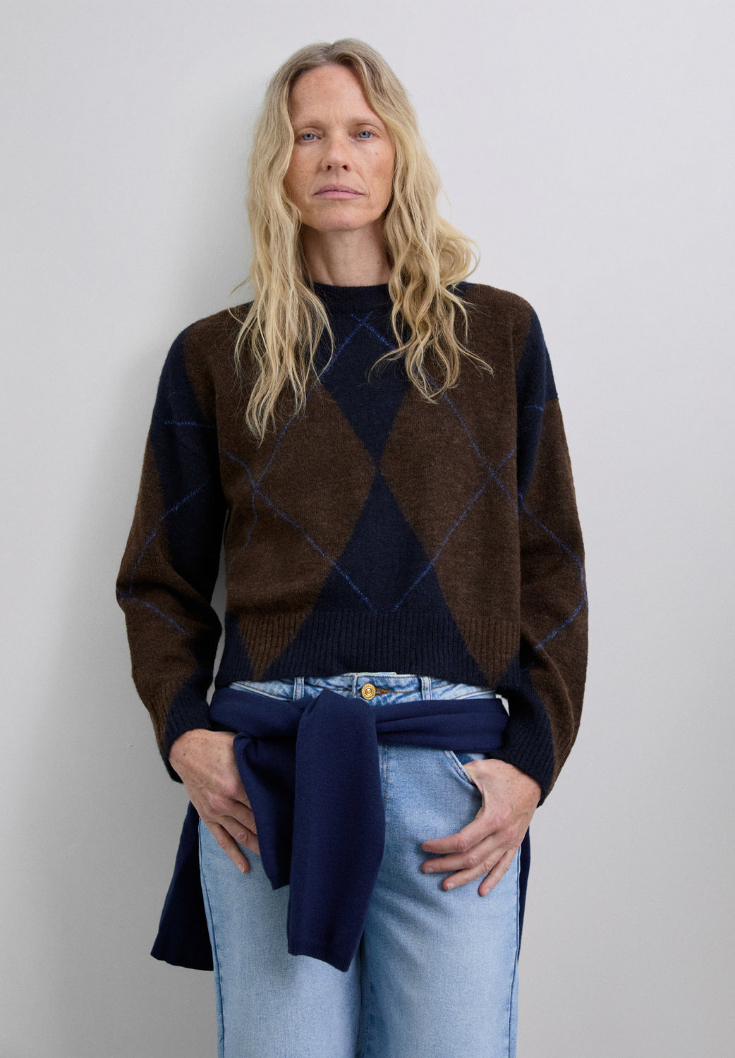 Jersey confeccionado en tejido con mezcla de lana. Estampado de rombos. Regular fit. Cuello redondo con rib. Manga larga con puños acabados en rib.