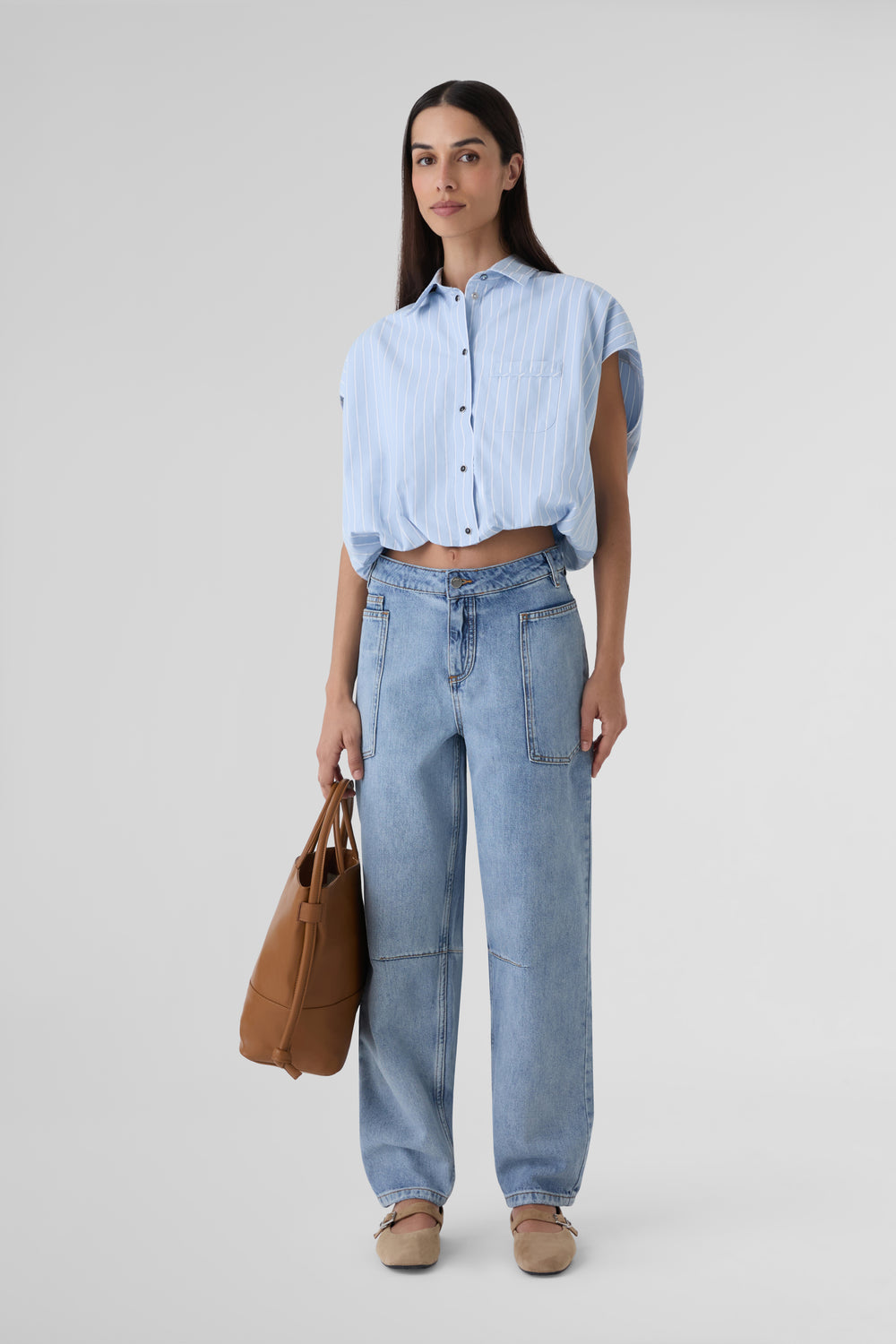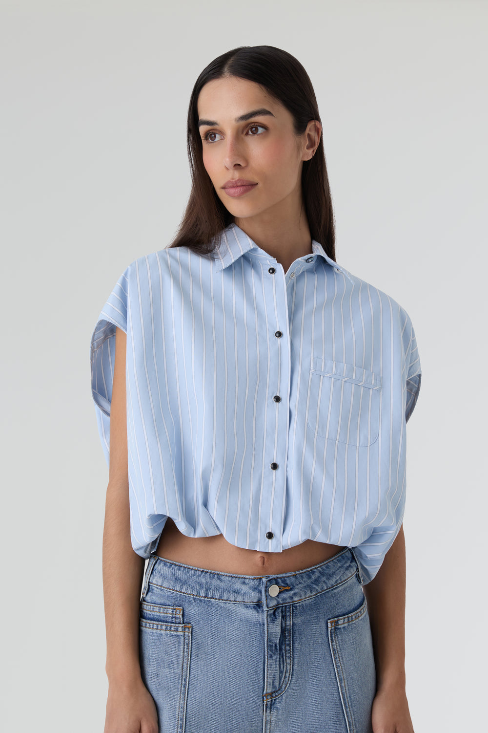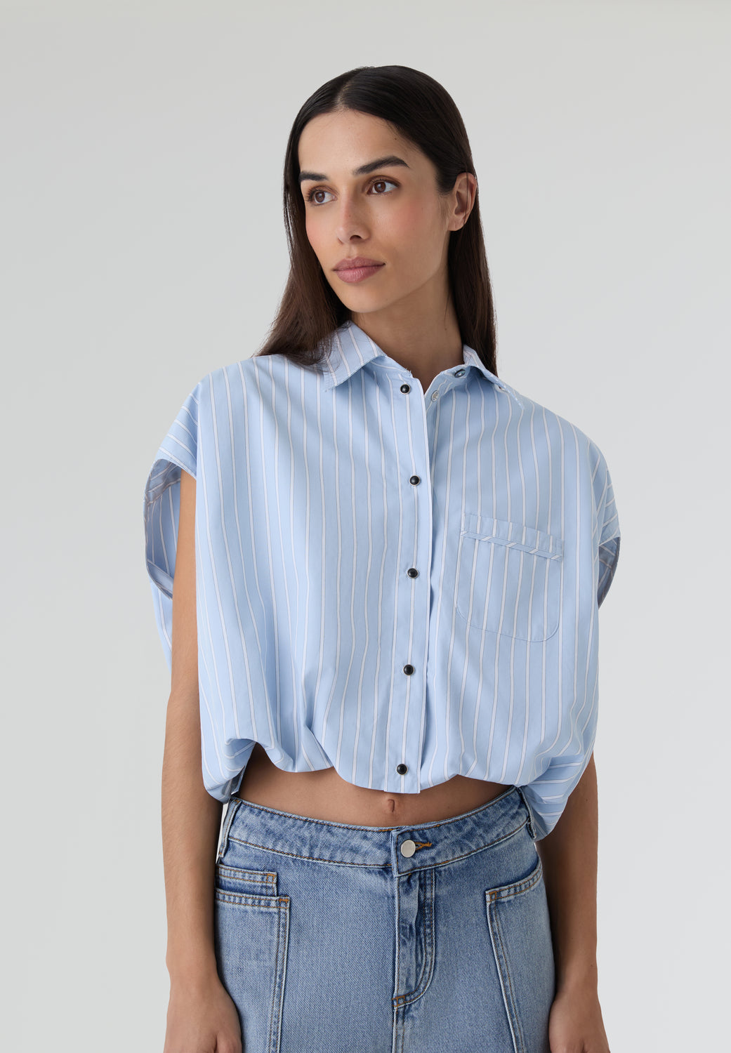 Camisa Bellerose crop. Confeccionada en tejido 100% algodón con cierre abotonado y bolsillo en la parte delantera.