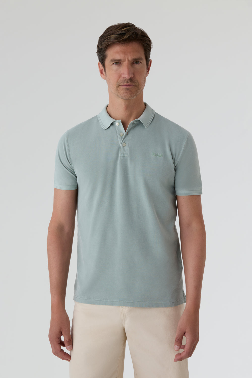 Polo Woolrich confeccionado con piqué de algodón elástico. Cuenta con cuello acanalado al igual que la parte inferior de las mangas, aberturas laterales en la parte inferior y un pequeño logo bordado en el pecho.