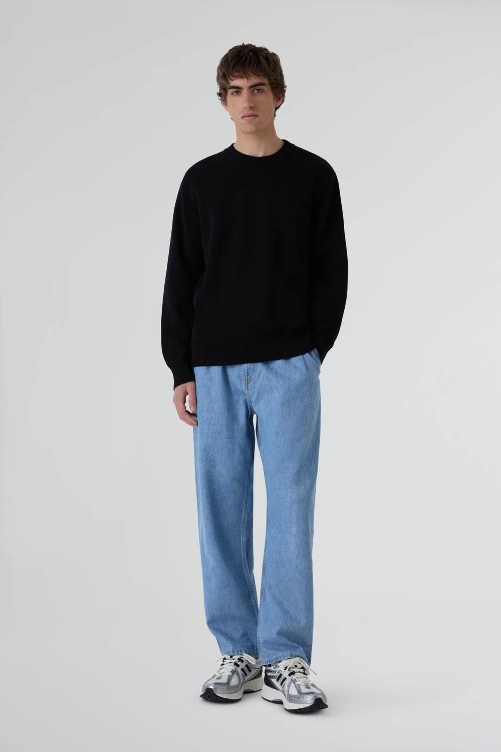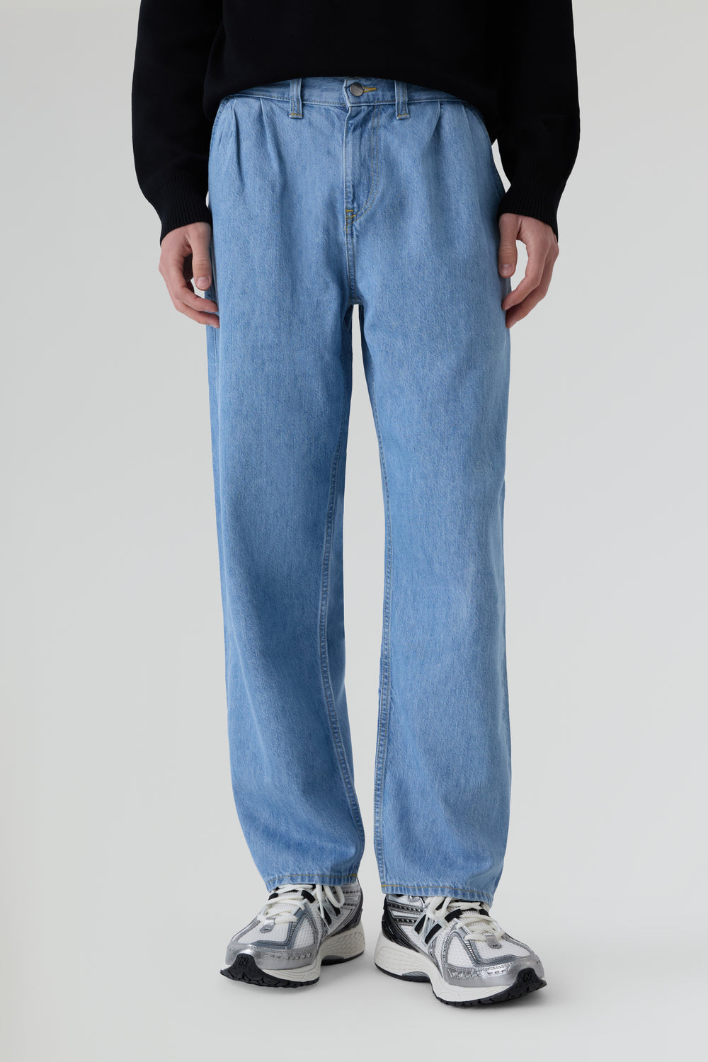 Pantalón Edwin confeccionado en tejido 100% algodón con ajuste holgado, pliegues dobles en la parte delantera y 4 bolsillos.