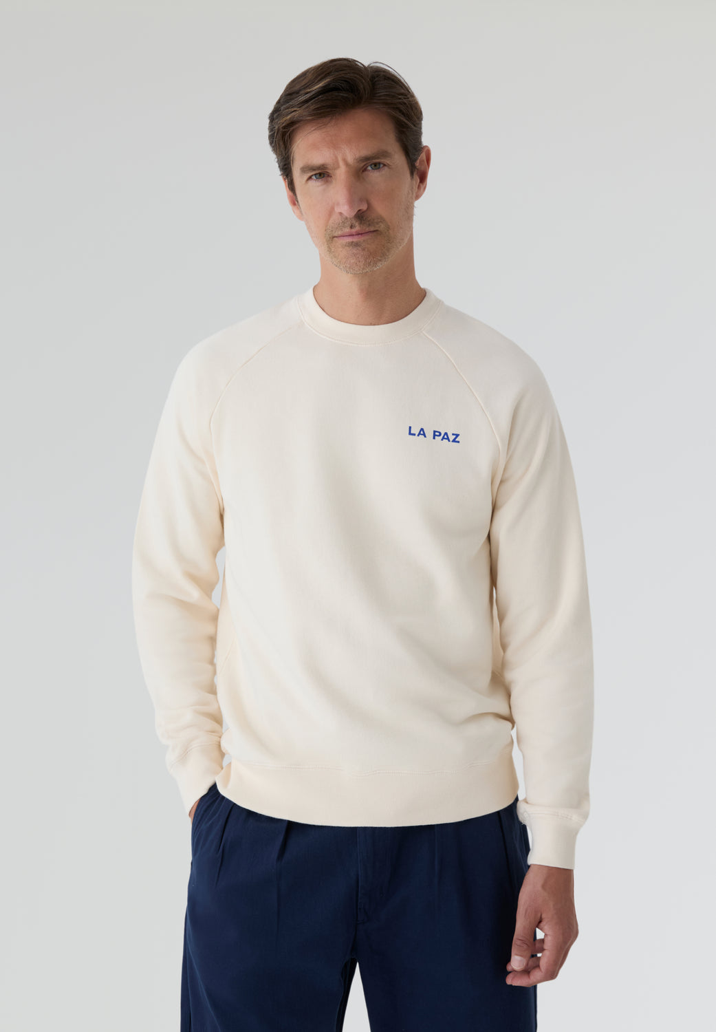 Sudadera La Paz confeccionada en tejido 100% algodón ligero de corte regular con estampación en la parte delantera y trasera.
