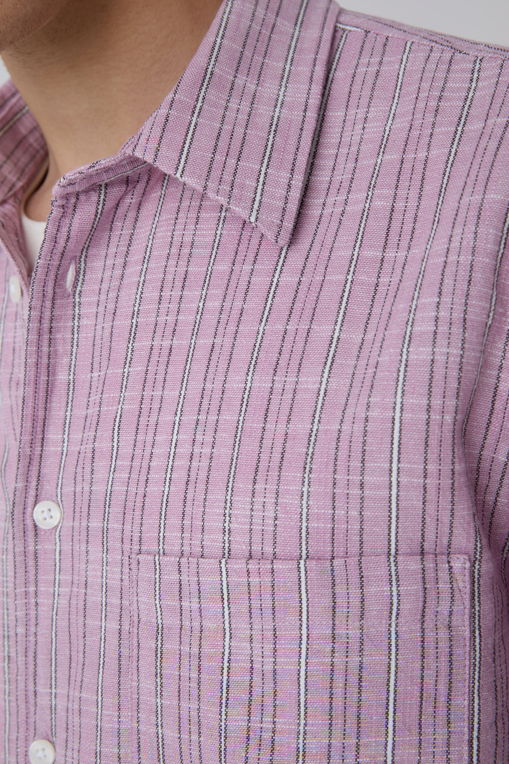 Camisa Samsoe Samsoe confeccionada en tejido de lino y algodón con cierre abotonado y estampado a rayas.