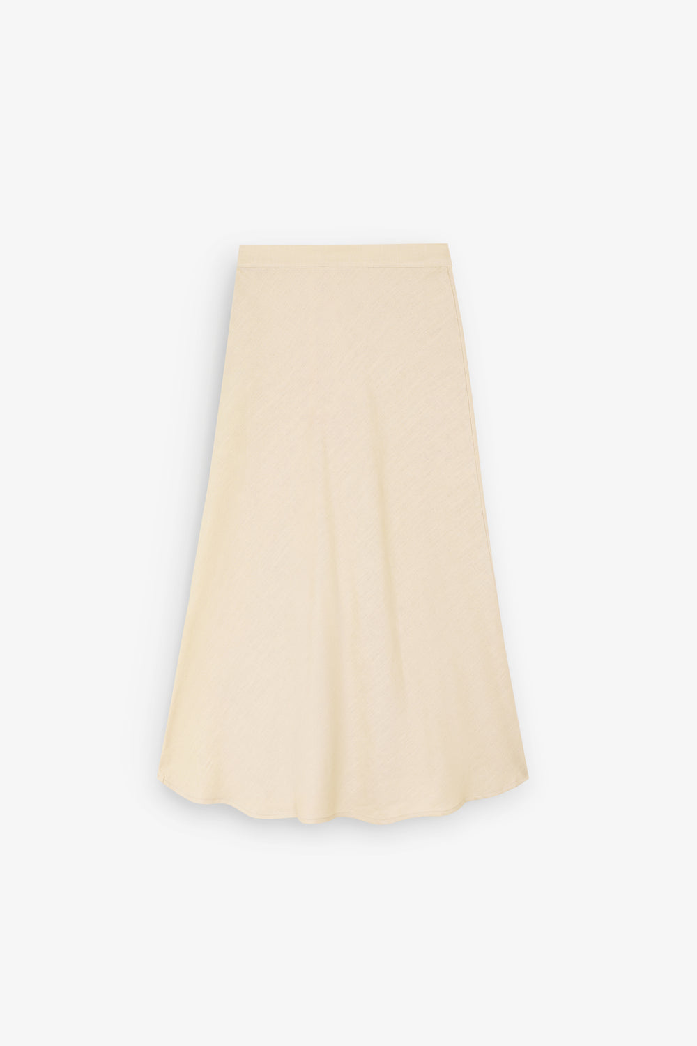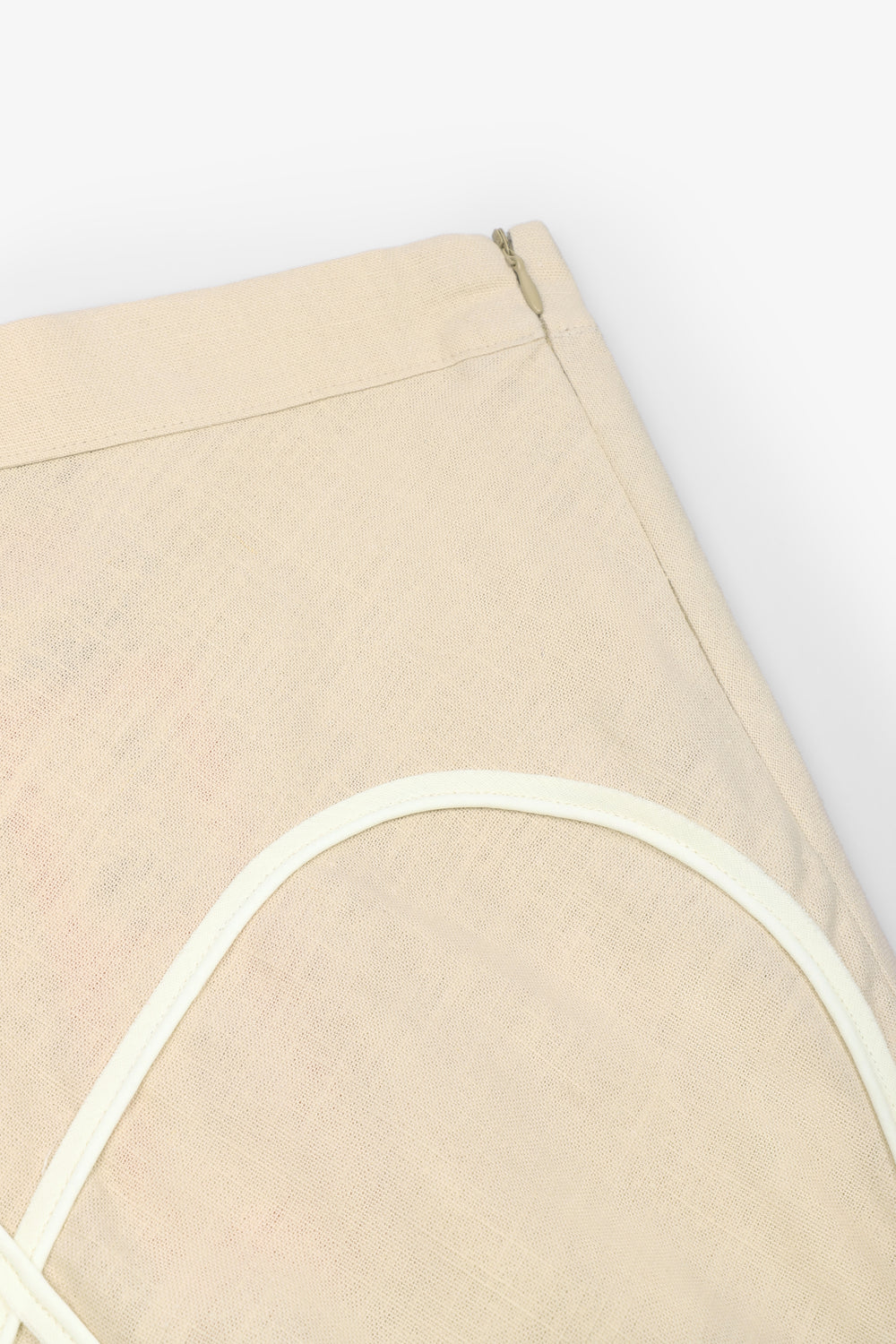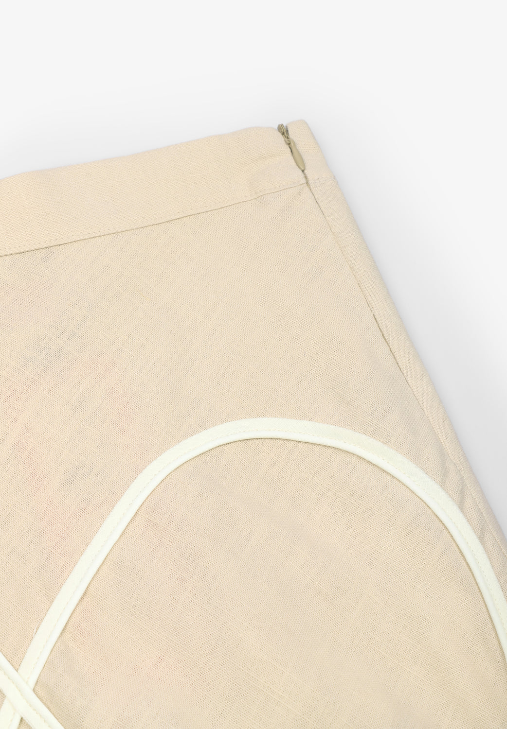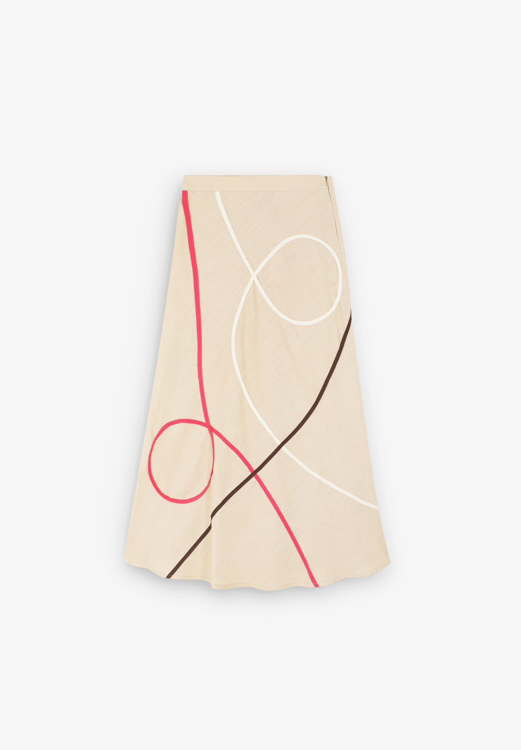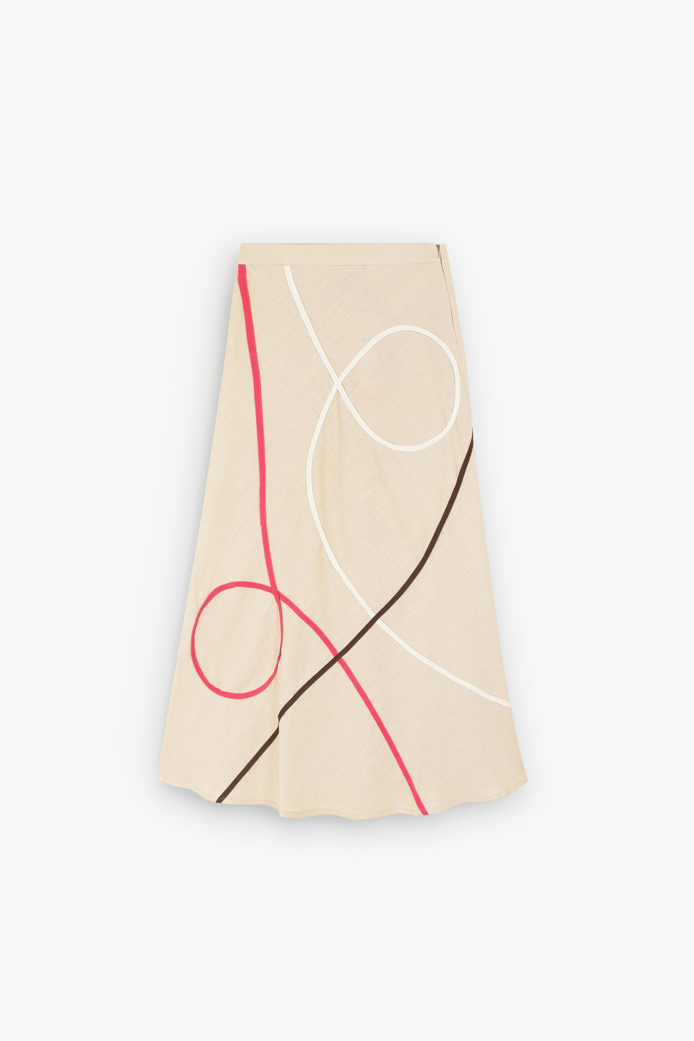 Falda Werit confeccionada en tejido 100% lino. Falda midi con detalle de vivos de colores en el delantero entrecruzándose. Falda con ligero vuelo.