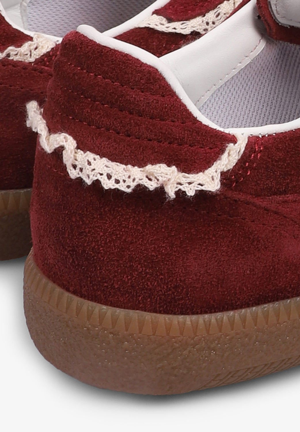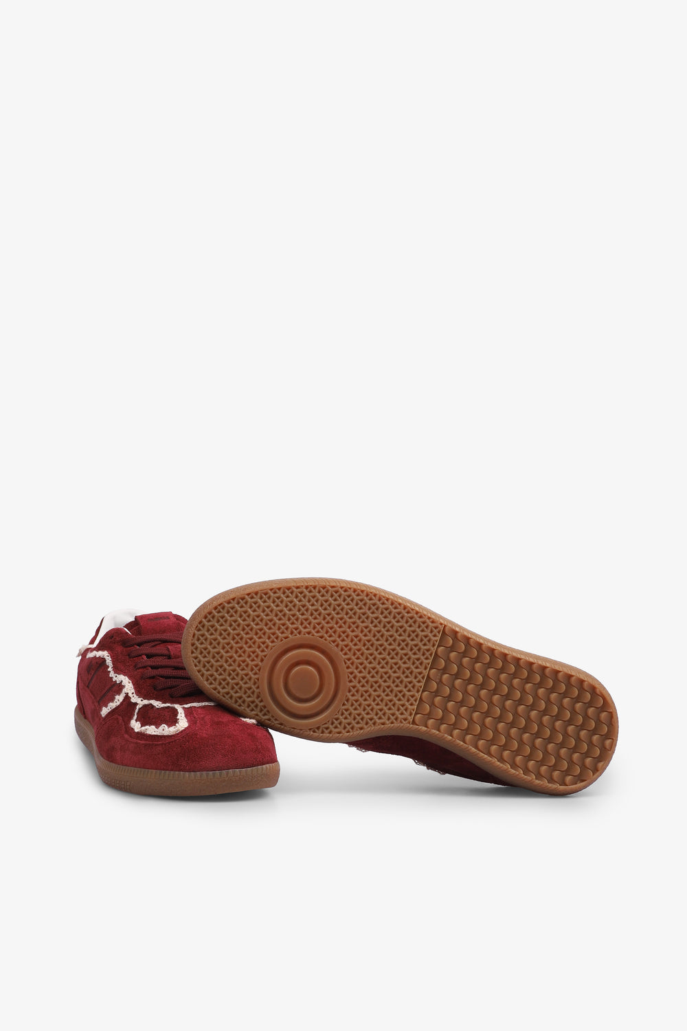 Sneakers Alohas confeccionadas en 100% cuero de vaca. Cuentan con delicados detalles de crochet, silueta de corte bajo sobre suelas de goma y detalles como costuras expuestas y el logo grabado en la lengüeta y los laterales.