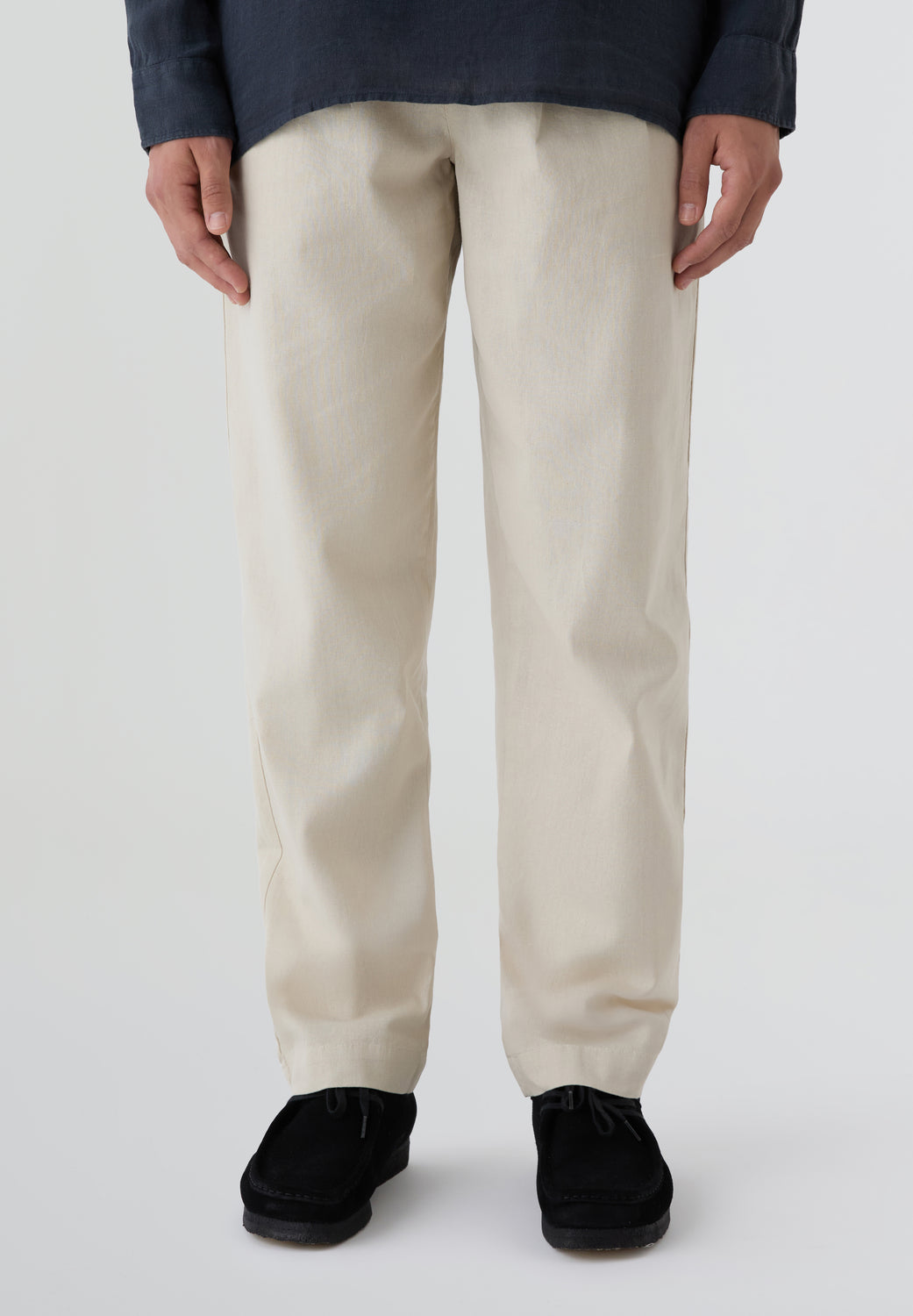 Pantalón de pinzas Ramsos confeccionado en 100% lino. Cierre con botón y detalle en la parte trasera en tono gris.