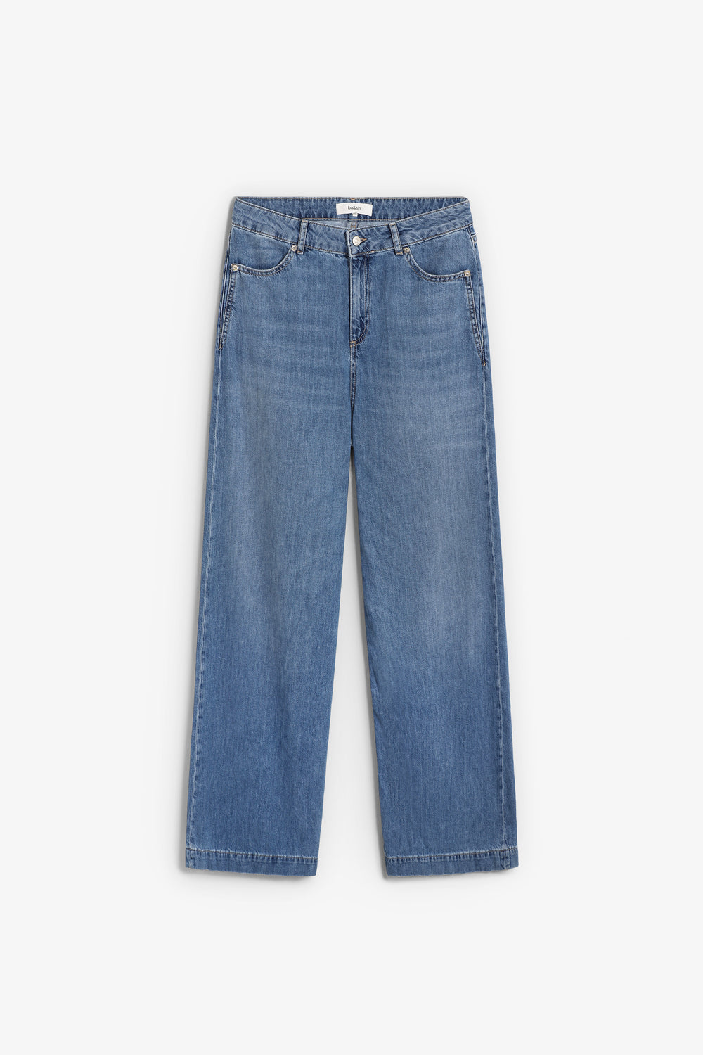 Pantalón vaquero Bash confeccionado en 100% algodón. Presenta una cintura media, y un corte ajustado a la cintura y pernera ancha,