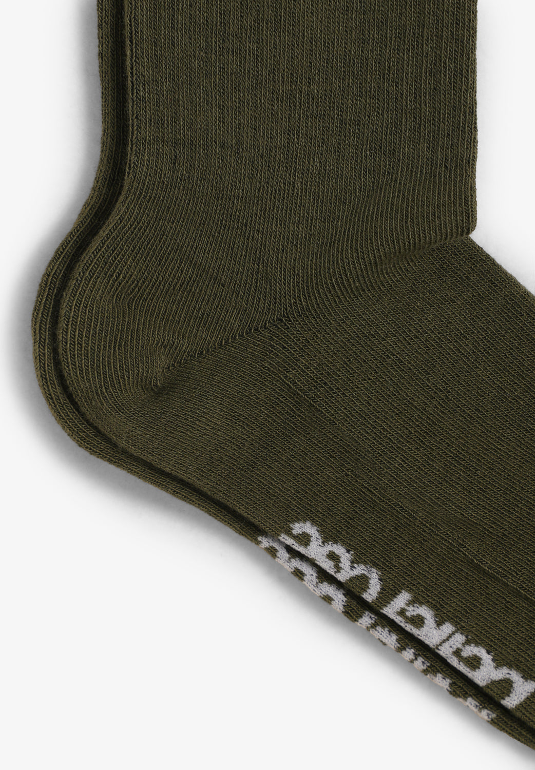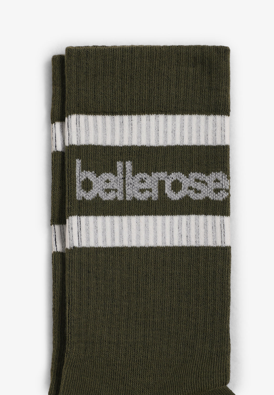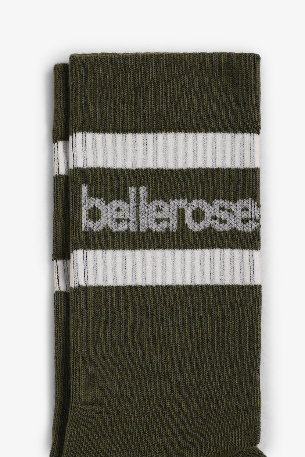 Calcetines Bellerose confeccionados en 75% algodón, 3% elastano y 22% poliamida. Cuenta con textura acanalada de peso medio, longitud de caña media y logotipo de Bellerose en el tobillo y la suela.