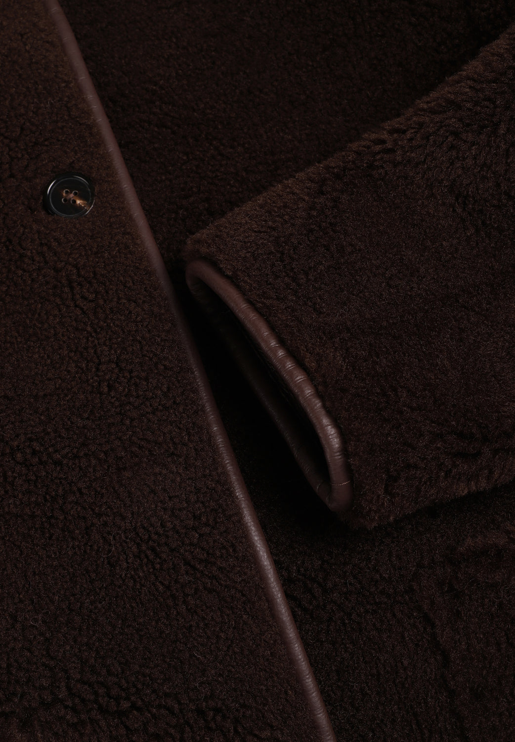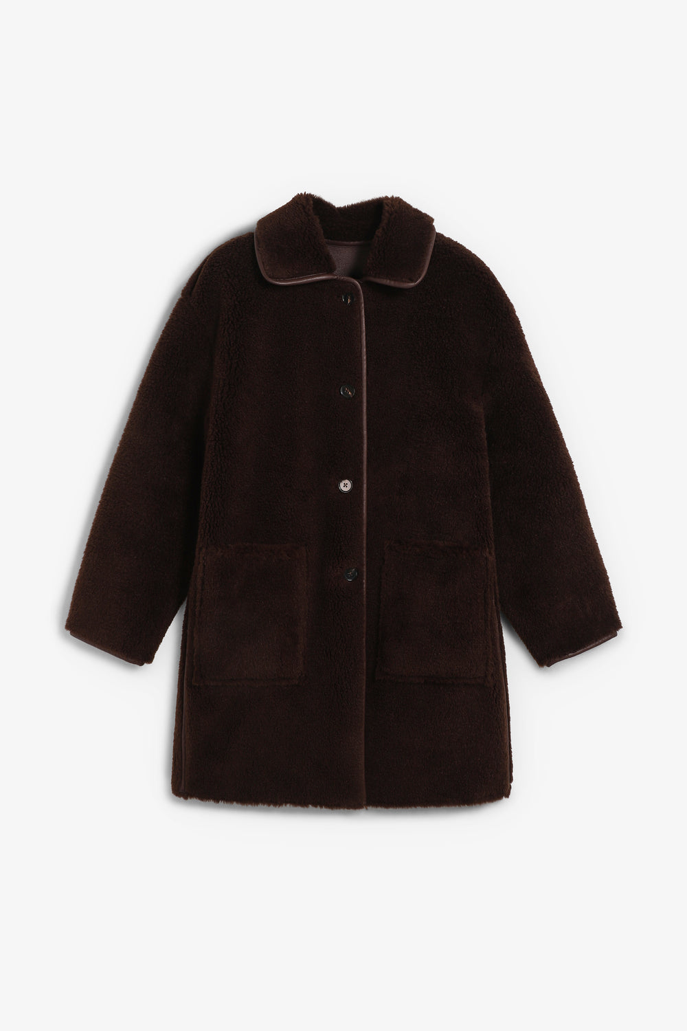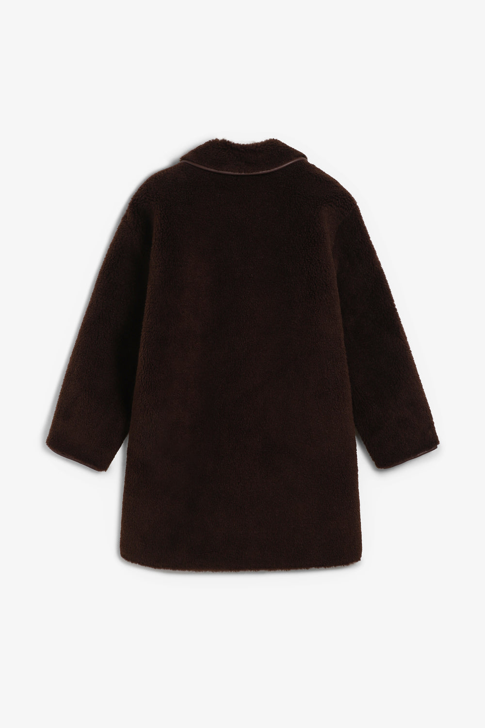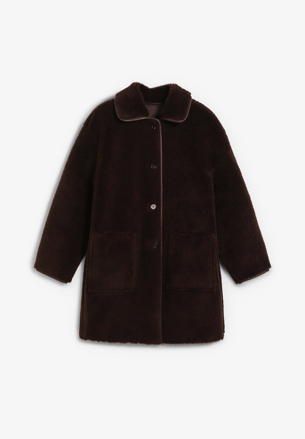 Abrigo reversible Bellerose confeccionado en 75% poliéster y 25% poliuretano. Cuenta con un lado en peluche y el otro en piel sintética, cuello clásico, cierre de botones en ambos lados y dos juegos de bolsillos laterales grandes.